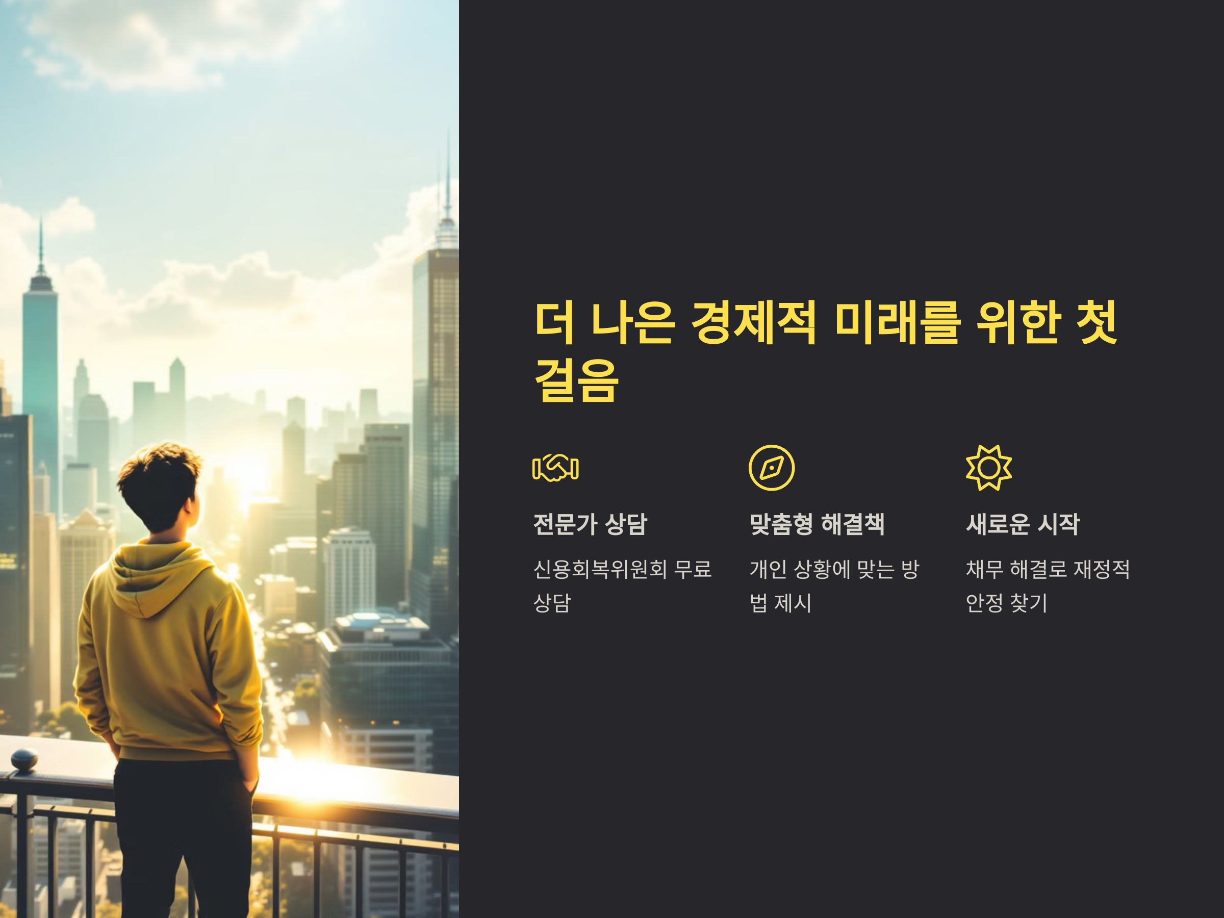 신용회복위원회는 개인회생을 신청하는 데 중요한 역할을 합니다. 개인회생 제도에 대한 정확한 정보와, 자신에게 맞는 회생 방법을 결정하기 위해서는 전문가의 상담이 필요합니다. 신용회복위원회에서는 무료로 상담을 제공하며, 채무자의 상황에 맞는 맞춤형 해결책을 제시합니다. 상담을 통해 개인회생의 필요성을 판단하고, 신청 여부를 결정하는 것이 좋습니다.
