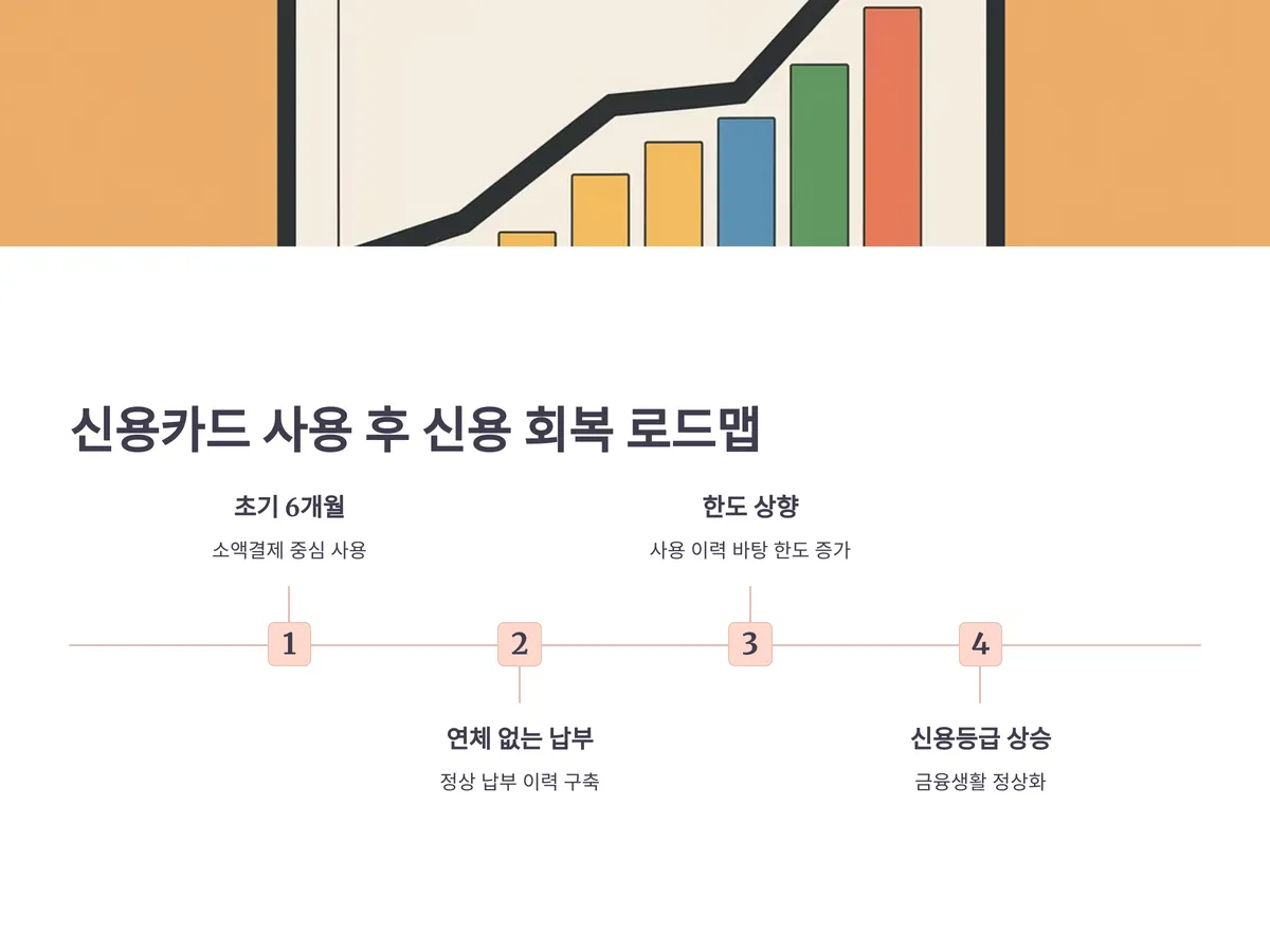 신용카드를 회복 단계에서 다시 사용하게 될 경우, 무분별한 소비는 금물입니다. 첫 6개월은 소액결제 중심으로 사용하고, 연체 없이 납부 이력을 남기는 것이 가장 중요합니다. 이후 카드사에서는 해당 이력을 바탕으로 한도 상향이나 추가 상품 추천이 가능하게 됩니다. 또한, 신용평가사에서는 이러한 이력을 반영해 신용등급에 점진적 상승 효과를 줄 수 있으므로, 장기적으로는 금융생활 정상화에도 긍정적인 영향을 줄 수 있습니다.