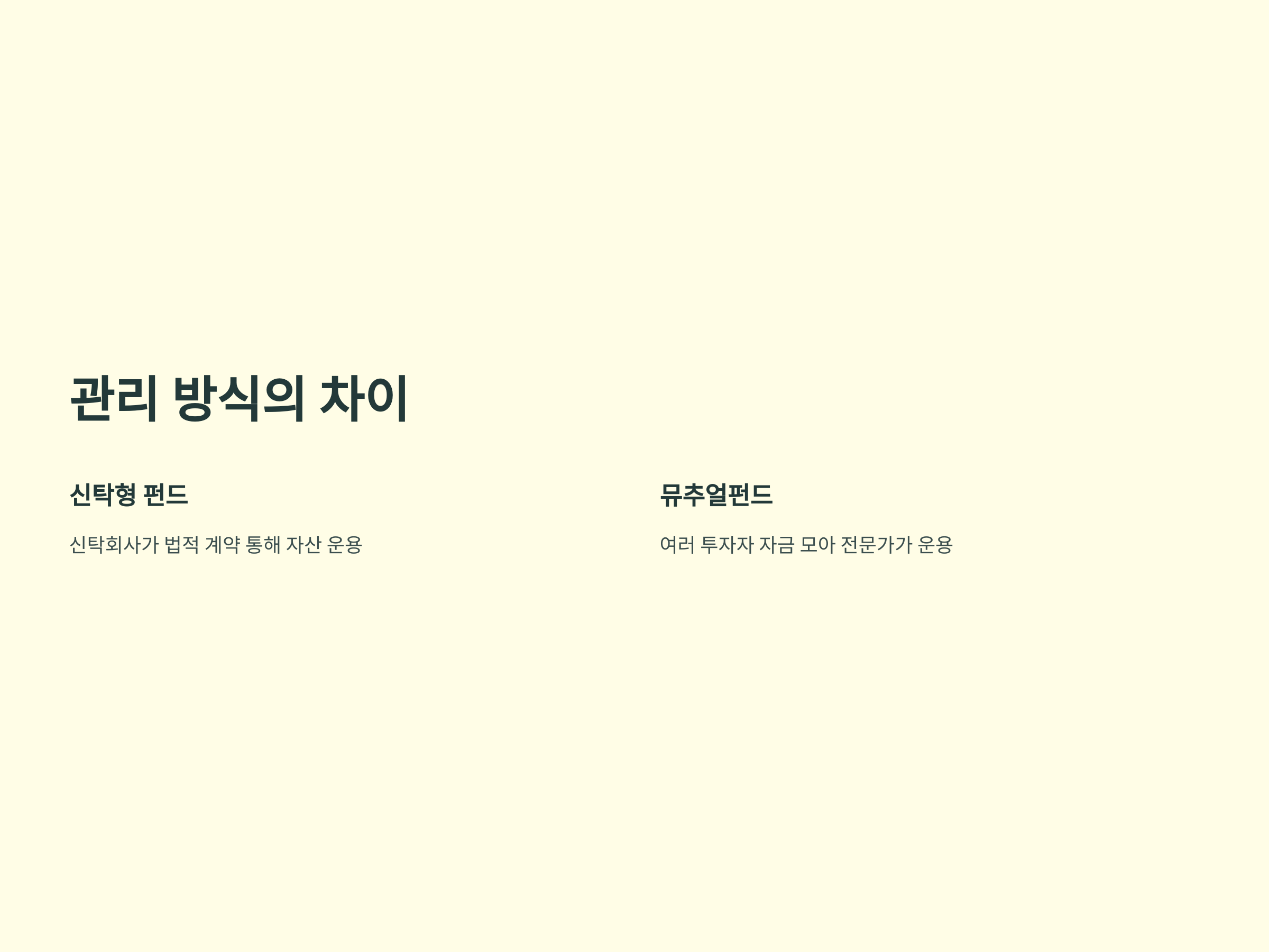 - 관리자: 신탁형 펀드에는 전문적인 신탁회사가 관리자로 지정되어 자산을 관리합니다.