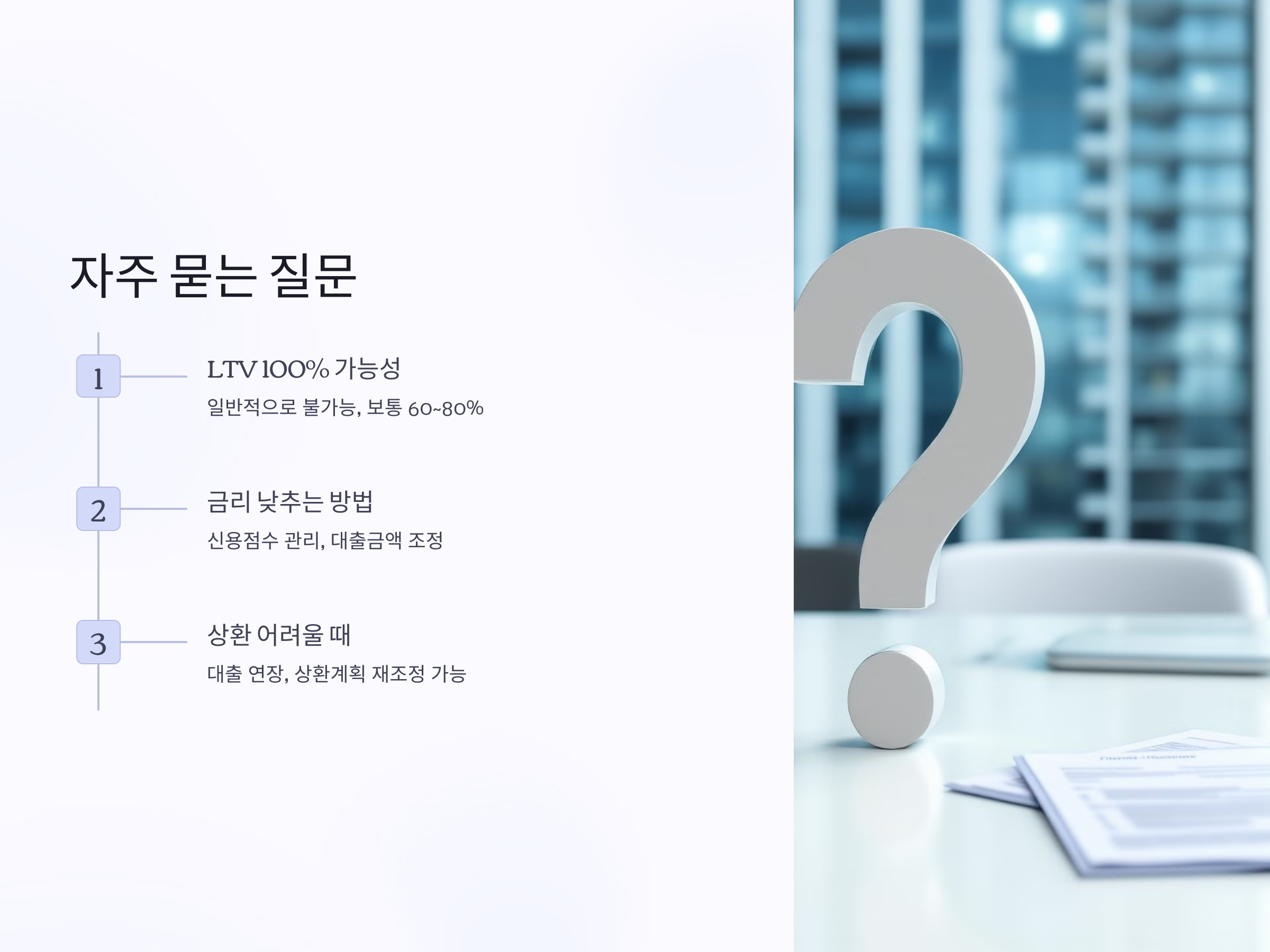 여러 금융기관의 대출 조건을 비교하는 것이 중요합니다. 대출 금리, LTV 비율, 상환 기간 등이 다르므로, 자신에게 가장 유리한 조건을 제공하는 금융기관을 선택해야 합니다.