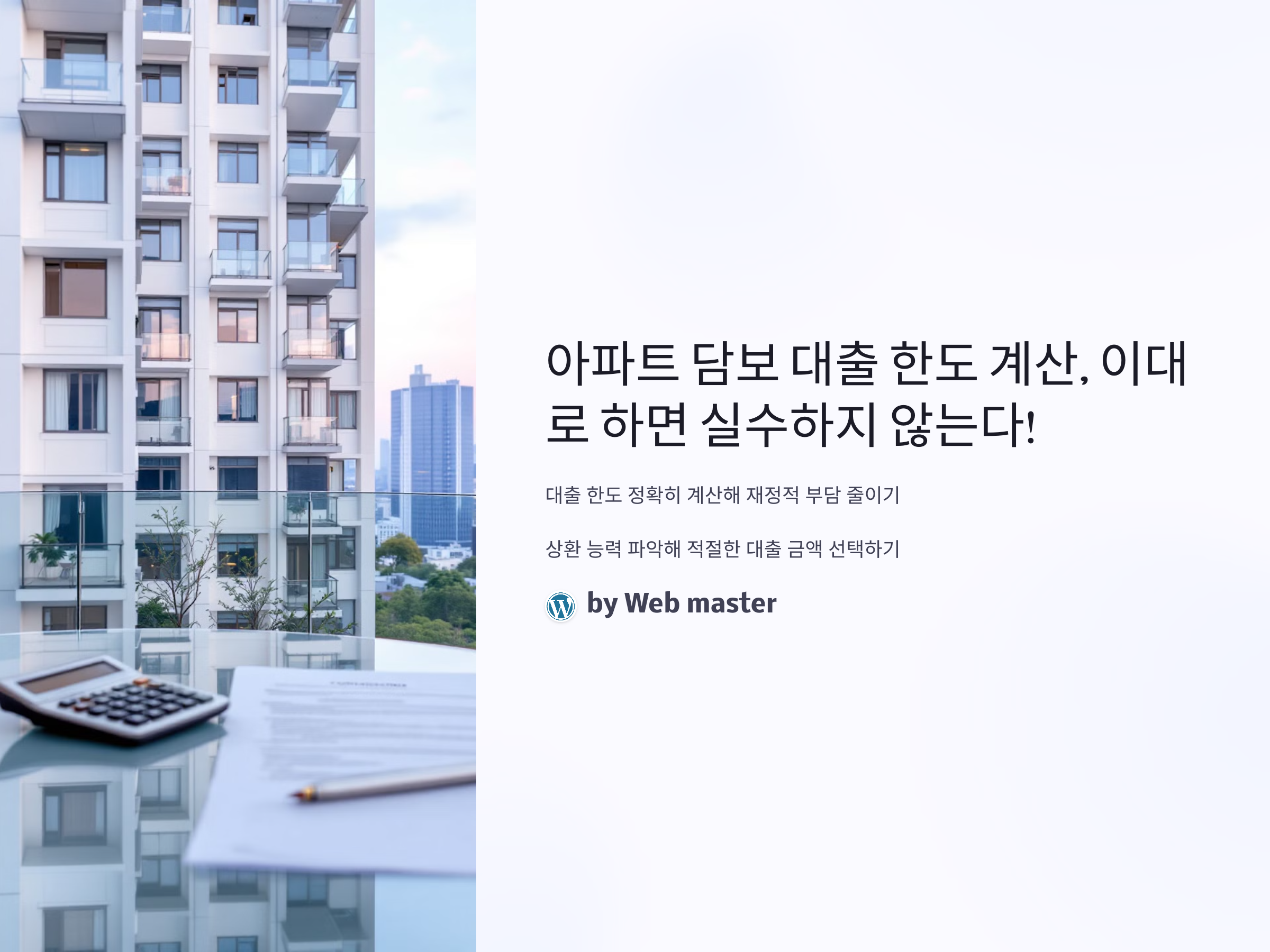 대출 한도를 잘 계산하여 부채를 관리하면, 장기적으로 재정적인 안정성을 확보할 수 있습니다. 이제, 아파트 담보 대출을 신중하게 결정하여 안정적인 재정 관리를 하세요.