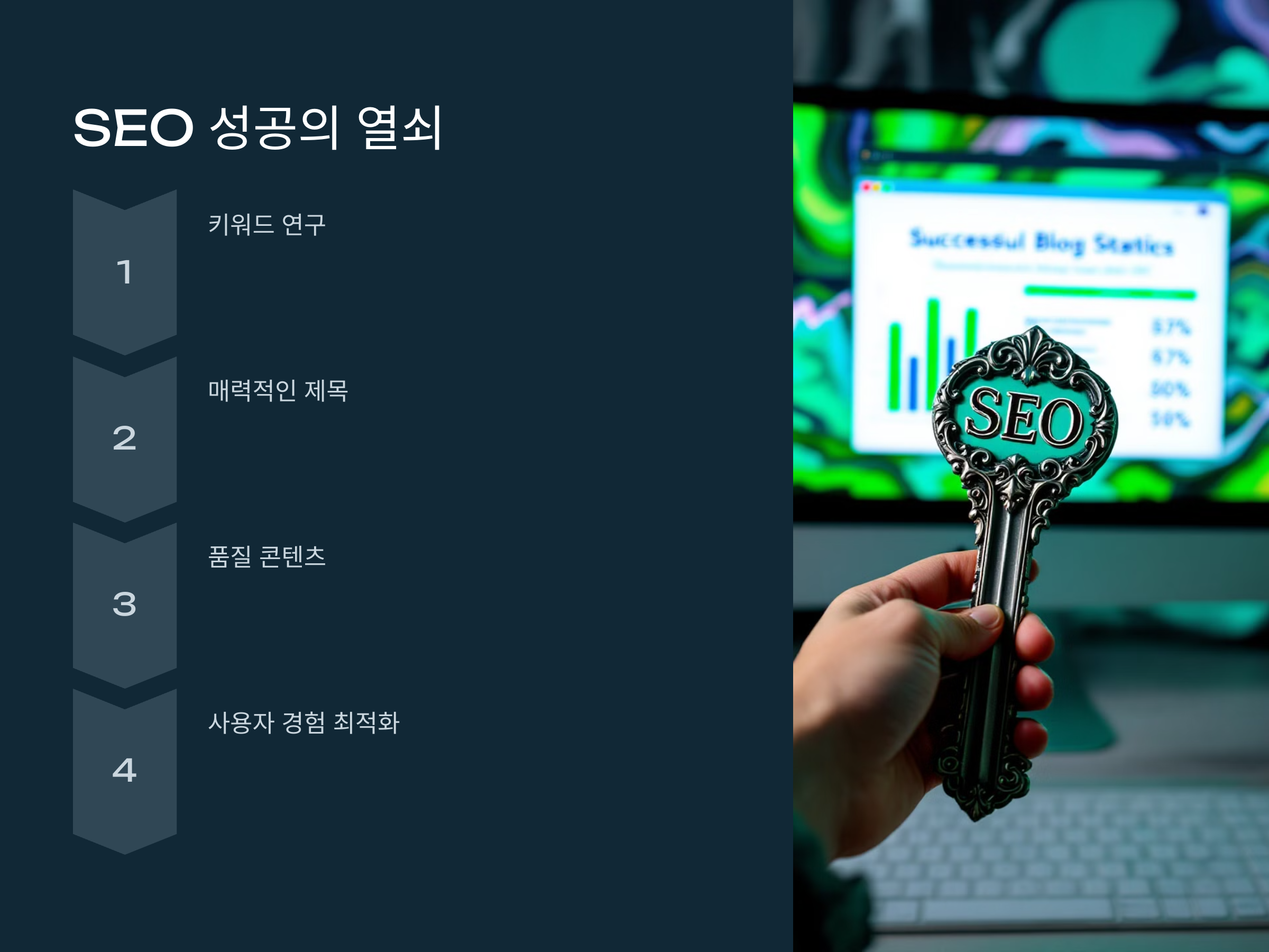 SEO(Search Engine Optimization)는 검색 엔진 결과에서 콘텐츠를 상위에 노출시키기 위한 전략을 뜻합니다. 오늘날 인터넷은 무수한 콘텐츠로 넘쳐나고 있어, 검색 결과에서 상위에 오르지 않으면 방문자를 확보하기 어렵습니다. 블로그가 성공하려면 SEO는 필수적입니다.