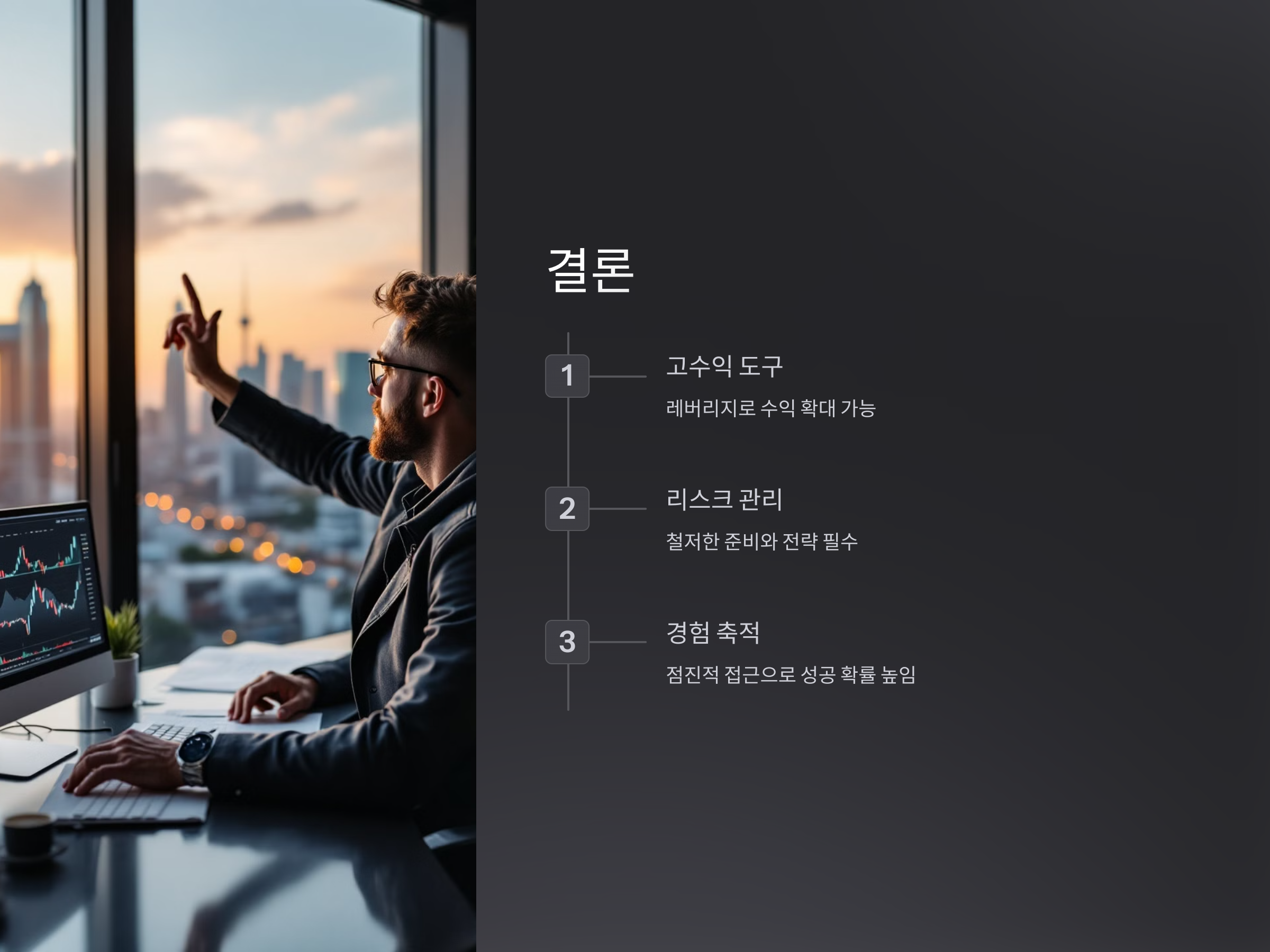 암호화폐 마진거래는 고수익을 올릴 수 있는 강력한 도구이지만, 그만큼 리스크가 크기 때문에 신중하게 접근해야 합니다. 마진거래를 성공적으로 활용하기 위해서는 전략적인 계획과 철저한 리스크 관리가 필수입니다. 레버리지 사용을 통해 얻을 수 있는 이익의 크기는 매우 크지만, 시장의 변동성에 민감하게 반응하는 만큼, 철저한 준비와 지속적인 학습이 필요합니다. 초보자는 소액으로 시작하고, 점차 경험을 쌓으면서 거래 규모를 늘려가는 것이 좋은 접근법이 될 것입니다.