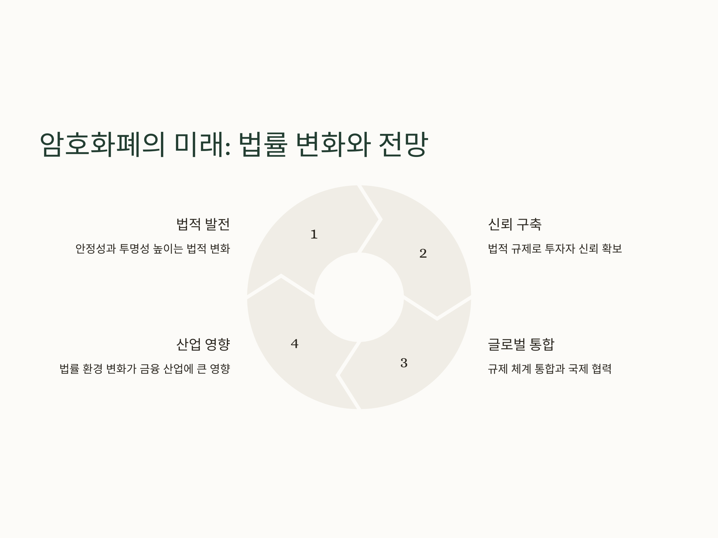 앞으로 암호화폐와 관련된 법적 규제는 계속해서 발전할 것입니다. 암호화폐의 안정성과 투명성을 높이기 위한 법적 변화가 이루어짐에 따라, 암호화폐는 더 많은 투자자들에게 신뢰를 얻을 수 있을 것입니다. 또한, 각국의 법적 규제 체계가 통합되고, 글로벌 수준에서 협력이 이루어질 경우 암호화폐 시장의 안정성도 더욱 강화될 것입니다. 그러나 여전히 많은 법적 이슈가 남아 있으며, 이에 대한 논의와 해결이 필요합니다. 암호화폐의 법률적 환경 변화가 향후 금융 산업에 미칠 영향은 매우 클 것입니다.