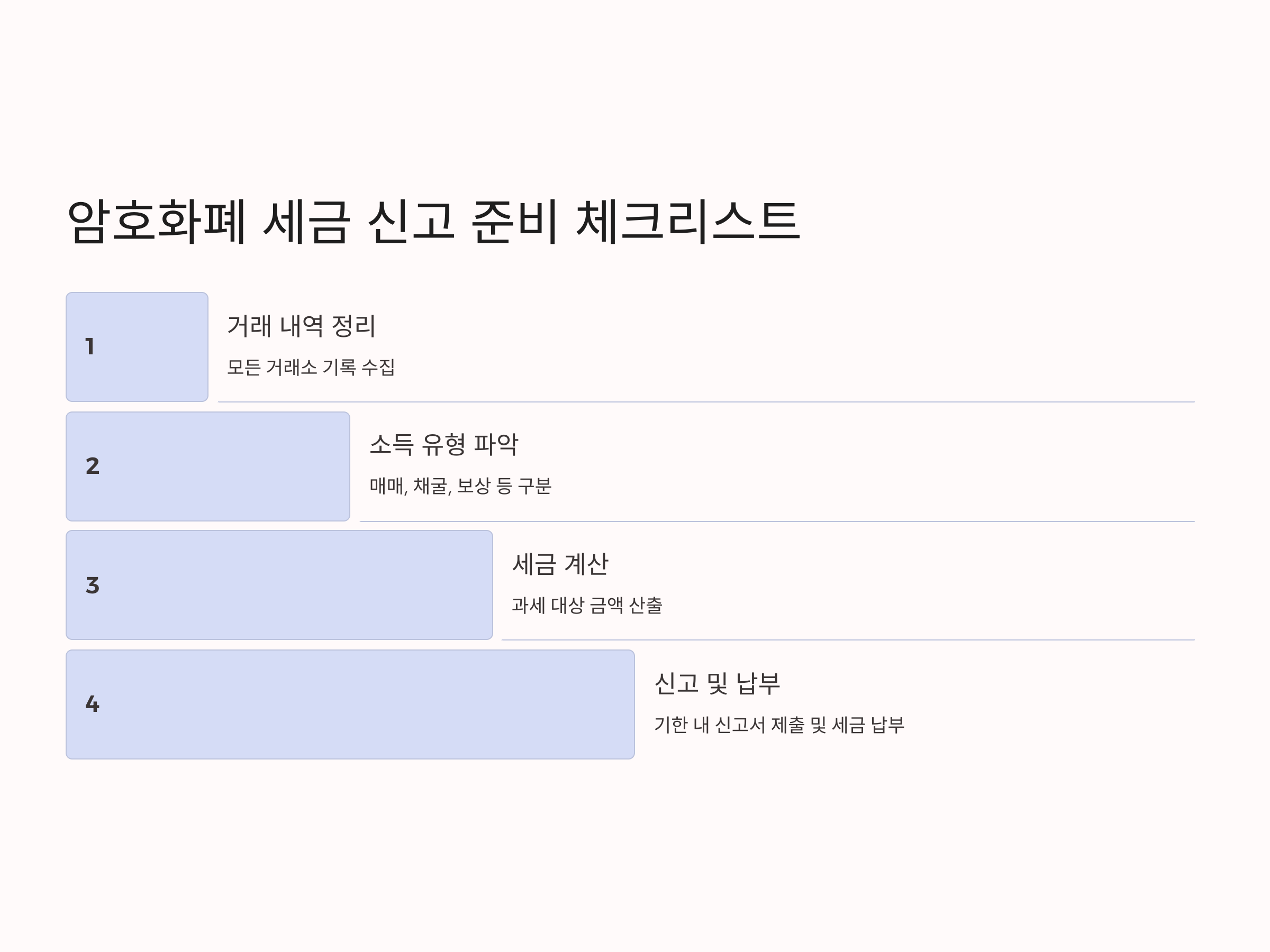 매매 차익, 채굴 소득, 보상 소득 등 발생한 소득 유형을 명확히 구분합니다.
