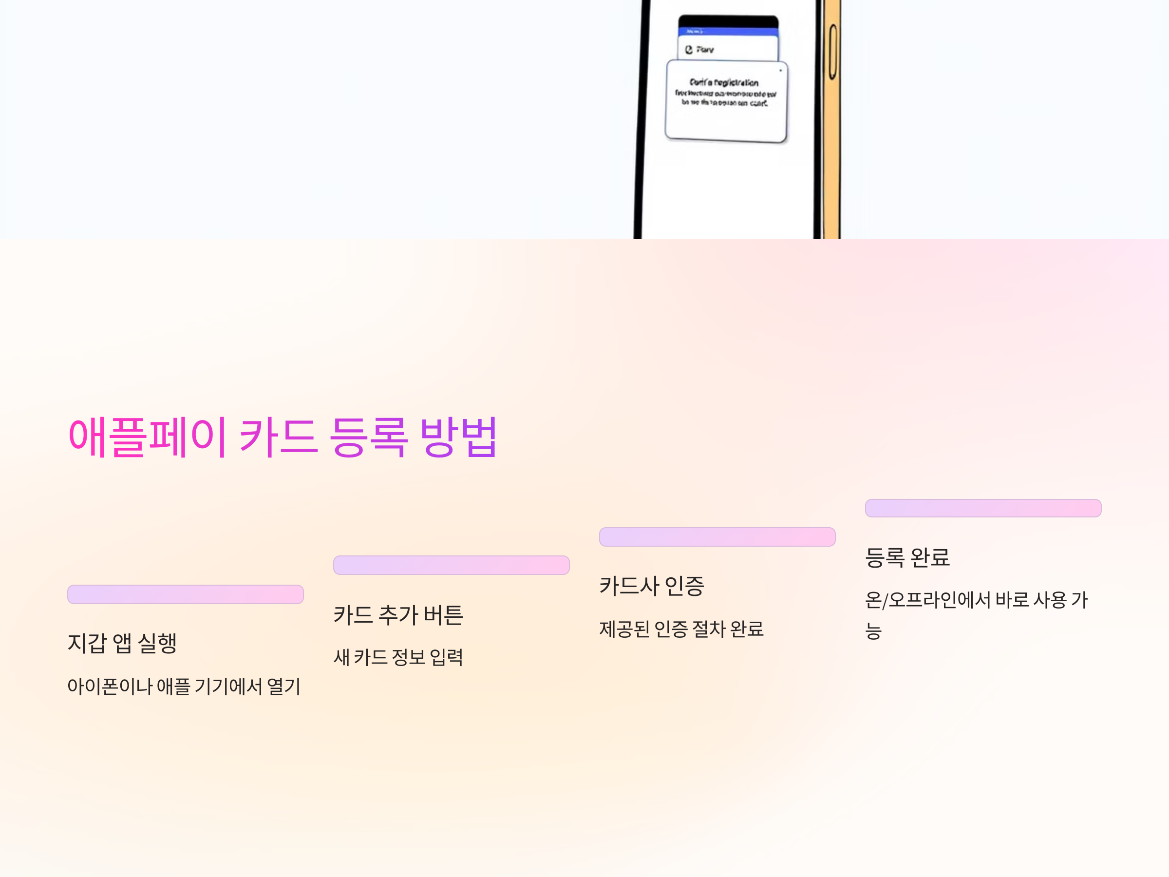 아이폰 외에도 애플워치나 아이패드에서 카드 등록을 진행할 수 있으므로, 각 기기에서 쉽게 애플페이를 활성화할 수 있습니다. 등록이 완료되면, 해당 카드를 통해 오프라인 매장뿐만 아니라 온라인에서도 간편하게 결제를 진행할 수 있습니다.
