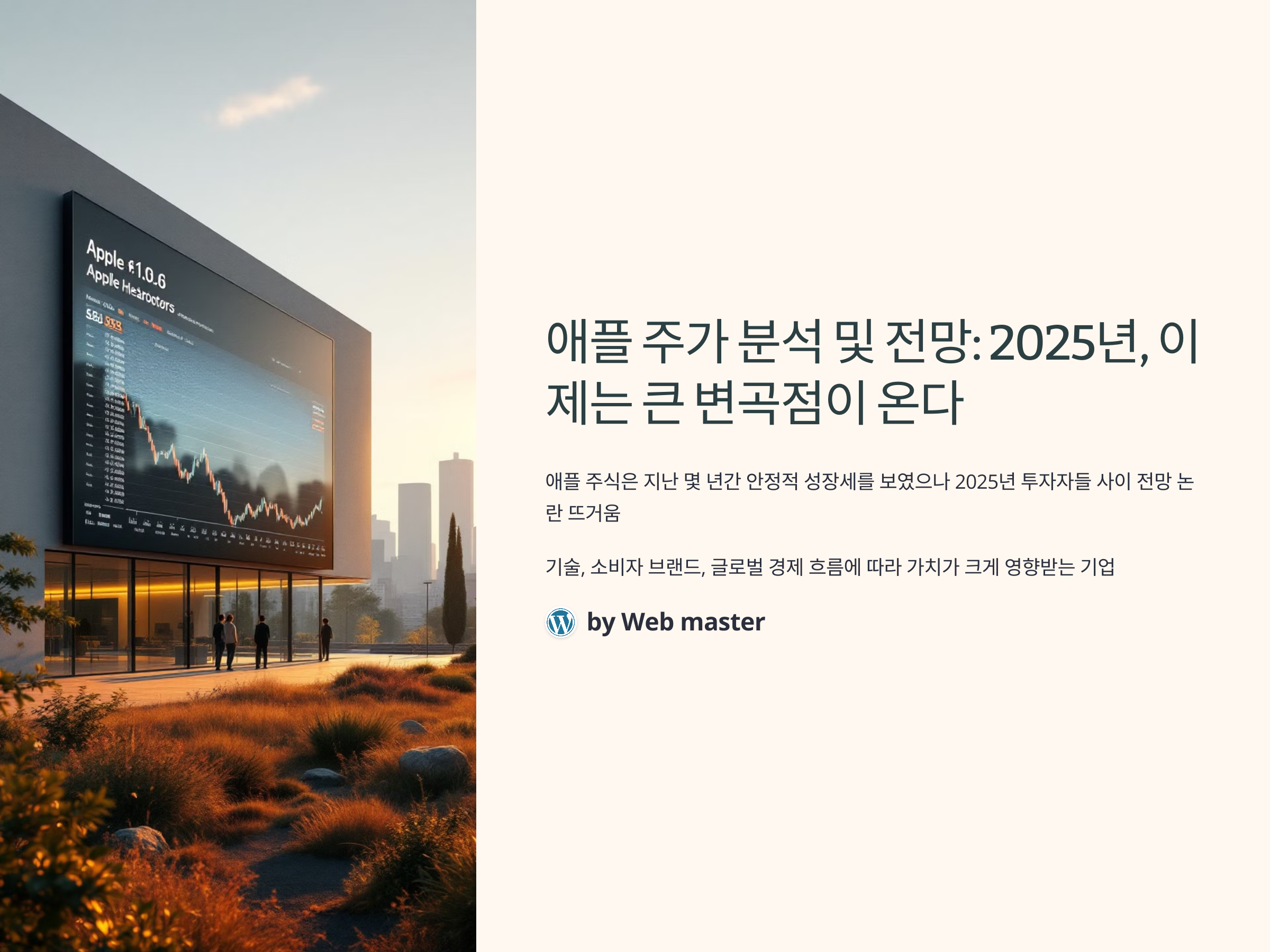 애플(AAPL) 주식은 지난 몇 년간 안정적인 성장세를 보여 왔습니다. 하지만 2025년을 맞이하면서 투자자들 사이에서는 그 주가의 향후 전망에 대한 논란이 뜨겁습니다. 애플은 기술, 소비자 브랜드, 그리고 글로벌 경제 흐름에 따라 그 가치가 크게 영향을 받는 기업입니다. 이번 글에서는 애플의 최근 주가 흐름, 시장 내 주요 변수, 그리고 향후 전망에 대해 심도 있게 분석해 보겠습니다.
