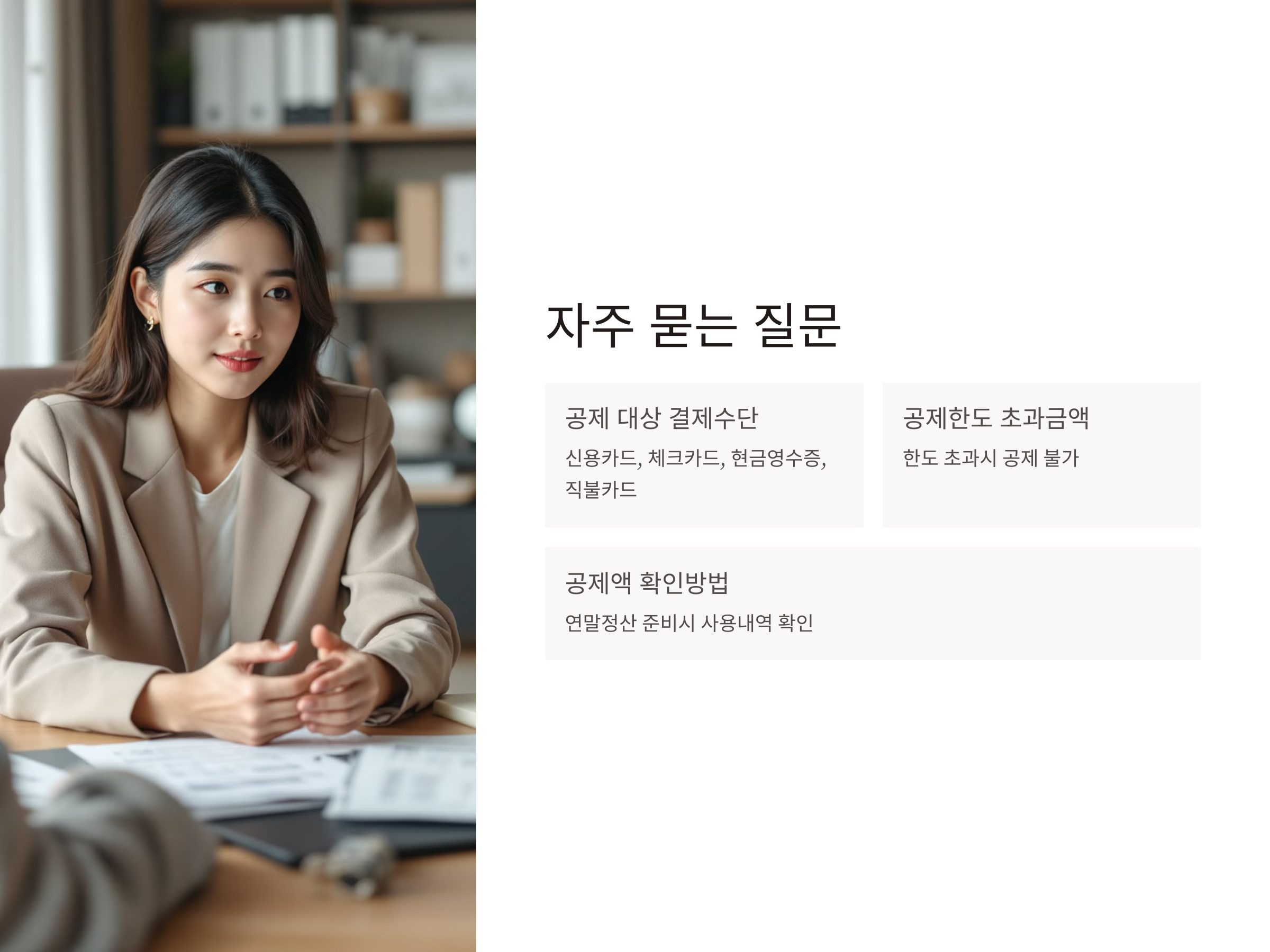 연말정산 신용카드 공제는 단순히 신용카드 사용액만을 대상으로 하지 않습니다. 체크카드나 현금영수증을 통한 사용도 포함되며, 이들을 잘 활용하는 것이 중요합니다. 특히 체크카드나 현금영수증을 사용할 경우, 신용카드보다 더 많은 공제를 받을 수 있는 경우도 있습니다.