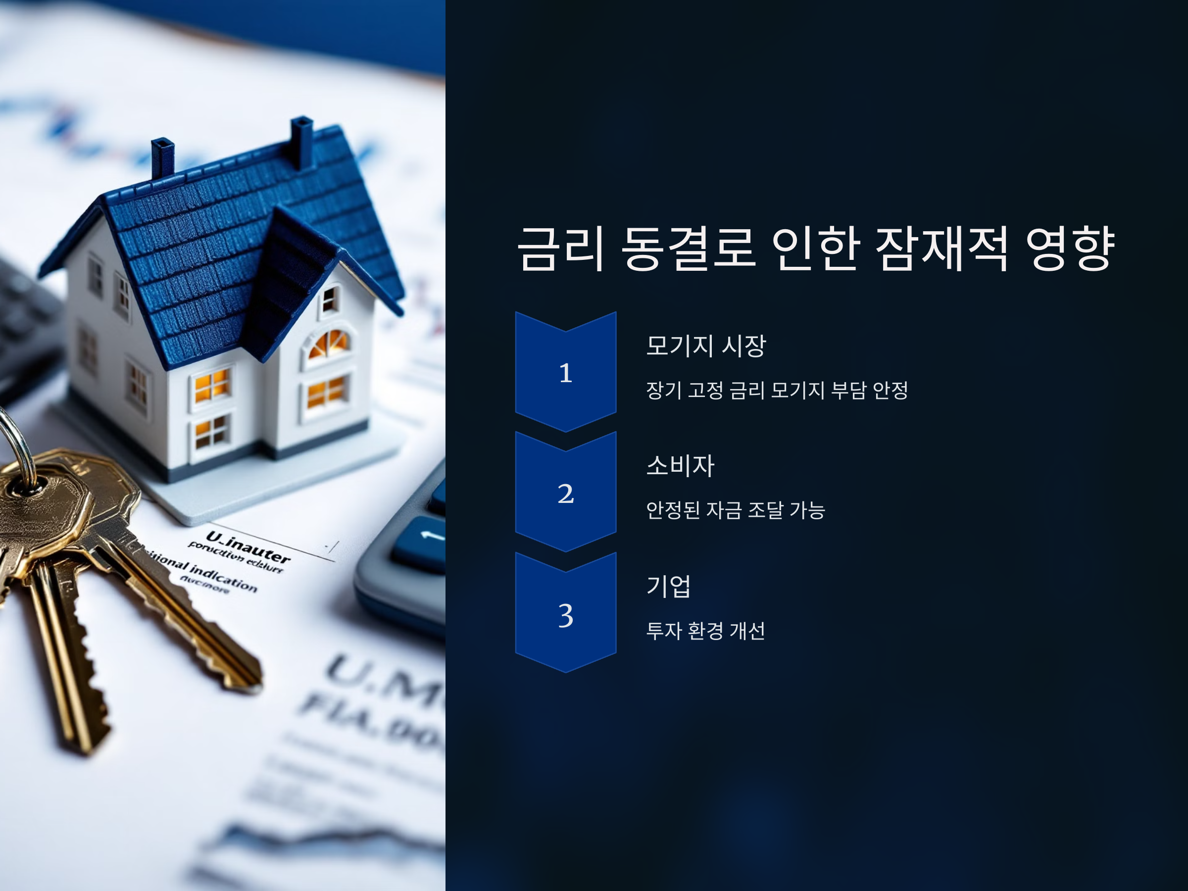 금리 동결은 우선적으로 대출 시장에 영향을 미칩니다. 미국의 모기지 금리는 연준의 금리 결정을 간접적으로 반영하므로, 현재의 금리 수준이 유지된다면 장기 고정 금리 모기지에 대한 부담은 상대적으로 안정적일 것입니다【8†source】. 또한, 소비자와 기업들이 안정된 금리에 따라 자금 조달을 원활하게 할 수 있어 경기 성장에 기여할 것으로 기대됩니다.