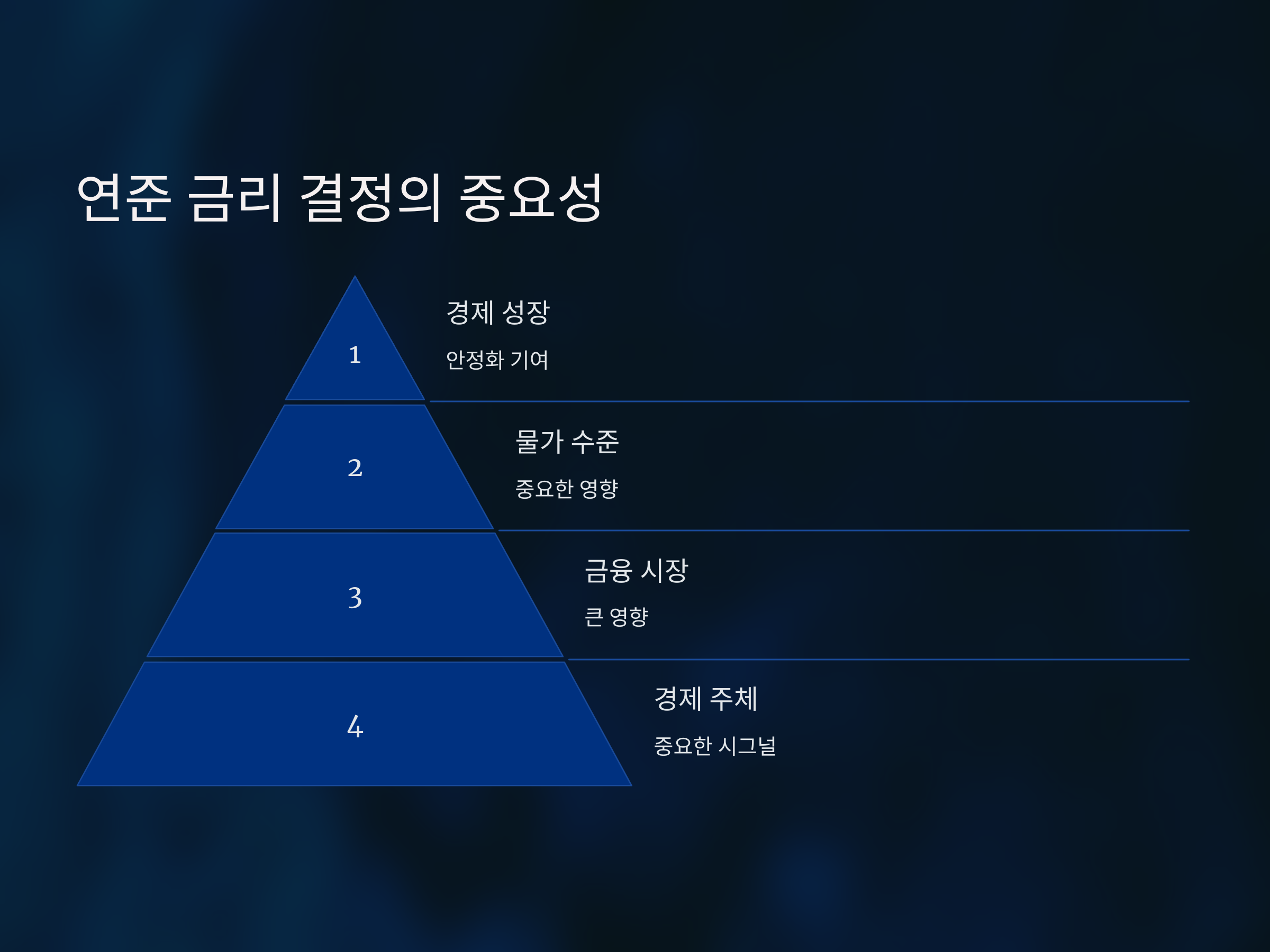 2025년 2월 연준의 금리 동결은 경기 안정화를 위한 중요한 결정입니다. 이는 향후 몇 달간 경제 성장과 물가 수준에 중요한 영향을 미치게 됩니다. 경제 성장률과 인플레이션의 변화에 따라 연준은 추가적인 금리 인하를 고려할 수 있으며, 이는 금융 시장에 큰 영향을 미칠 것입니다. 금리 정책의 변화는 모든 경제 주체에게 중요한 시그널을 주기 때문에, 향후 연준의 결정을 면밀히 주시하는 것이 중요합니다.