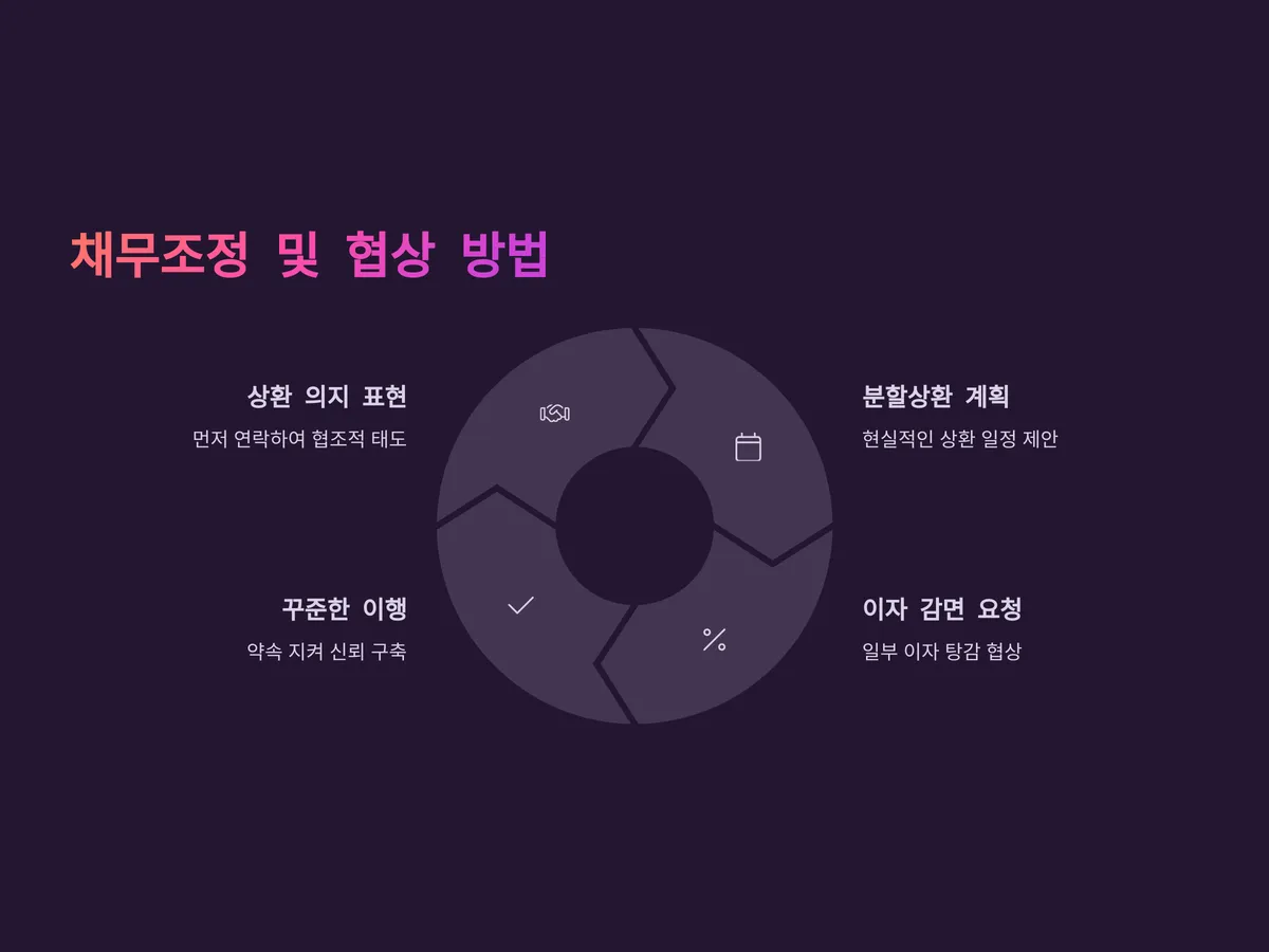 이때 가장 피해야 할 것은 연락을 피하고 방치하는 것입니다. 오히려 먼저 연락하여 상환 의지를 보이면 금융기관에서도 감액, 유예 등 협조적인 태도를 보이는 경우가 많습니다. 필요한 경우 신용회복위원회, 서민금융진흥원 등 공식기관에 도움을 요청하면 훨씬 유리하게 상황을 전개할 수 있습니다.