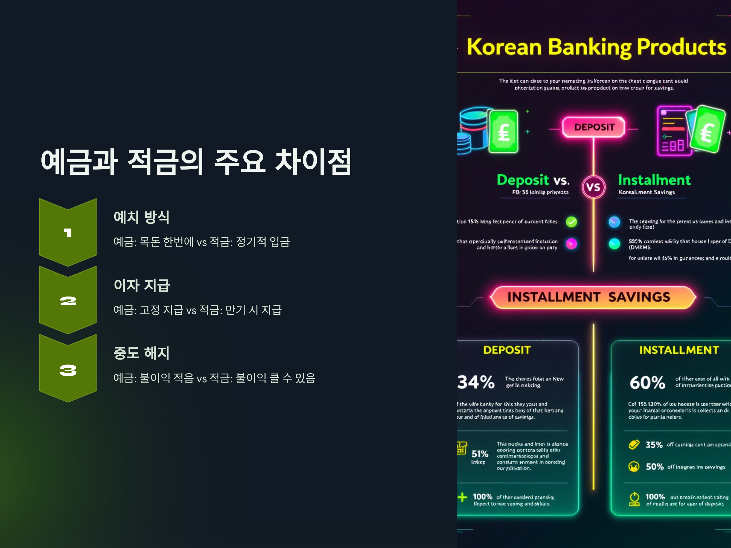 - 적금: 중도 해지 시, 이자가 줄어들거나 불이익이 있을 수 있음
