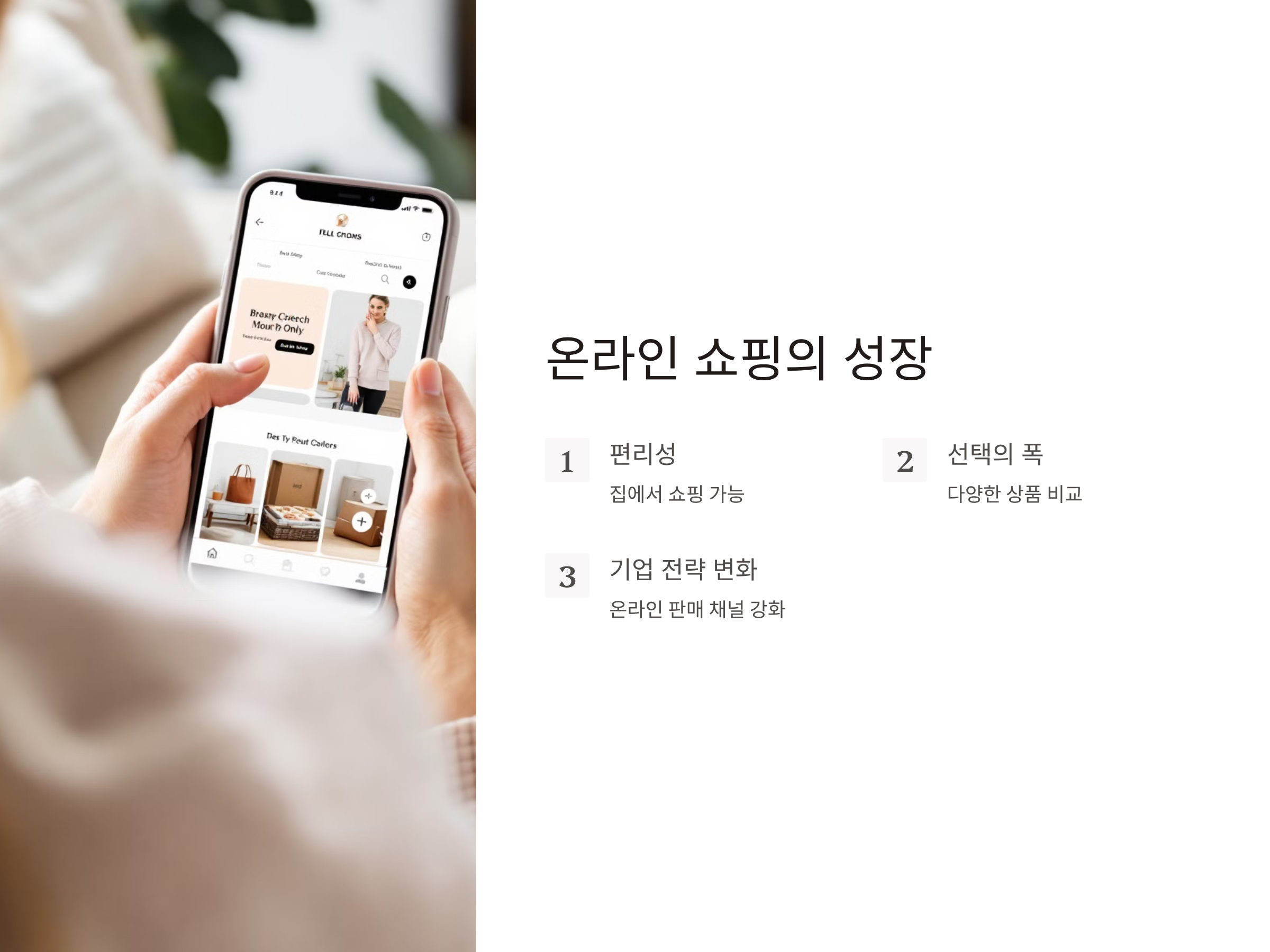 온라인 쇼핑의 성장은 소비자에게 편리함과 선택의 폭을 넓히는 효과를 가져왔습니다. 코로나19 팬데믹 동안 많은 사람들이 집에서 온라인으로 쇼핑을 하게 되었고, 그로 인해 인터넷 쇼핑몰과 e커머스 플랫폼은 급격히 성장하게 되었습니다. 이러한 변화는 비단 소비자들만의 변화가 아니라, 기업들의 전략에도 큰 영향을 미쳤습니다. 기업들은 오프라인 매장을 줄이고, 온라인 판매 채널을 강화하는 방향으로 전환을 꾀하고 있습니다.