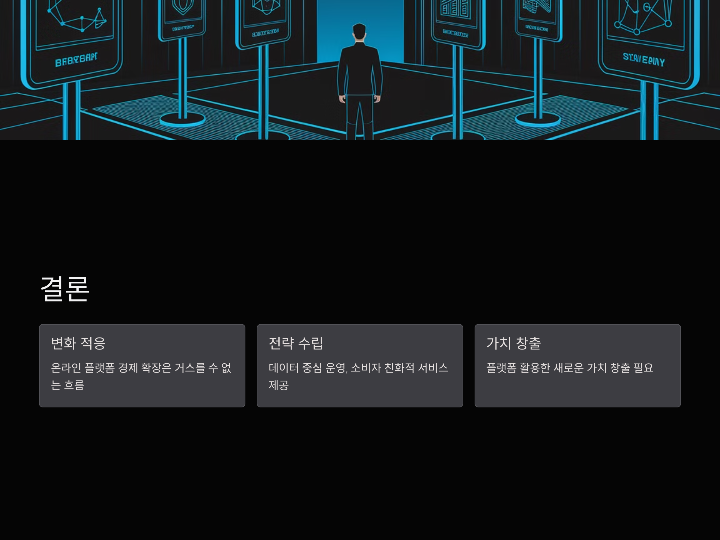 온라인 플랫폼 경제의 확장은 거스를 수 없는 흐름이다. 기업과 개인 모두 이 변화에 적응하고 적극적으로 대응해야만 성공할 수 있다. 데이터 중심의 비즈니스 운영, 소비자 친화적인 서비스 제공, 지속 가능한 성장 전략이 중요하다. 이제는 단순히 플랫폼을 이용하는 수준을 넘어, 플랫폼을 활용한 새로운 가치를 창출해야 할 때다.