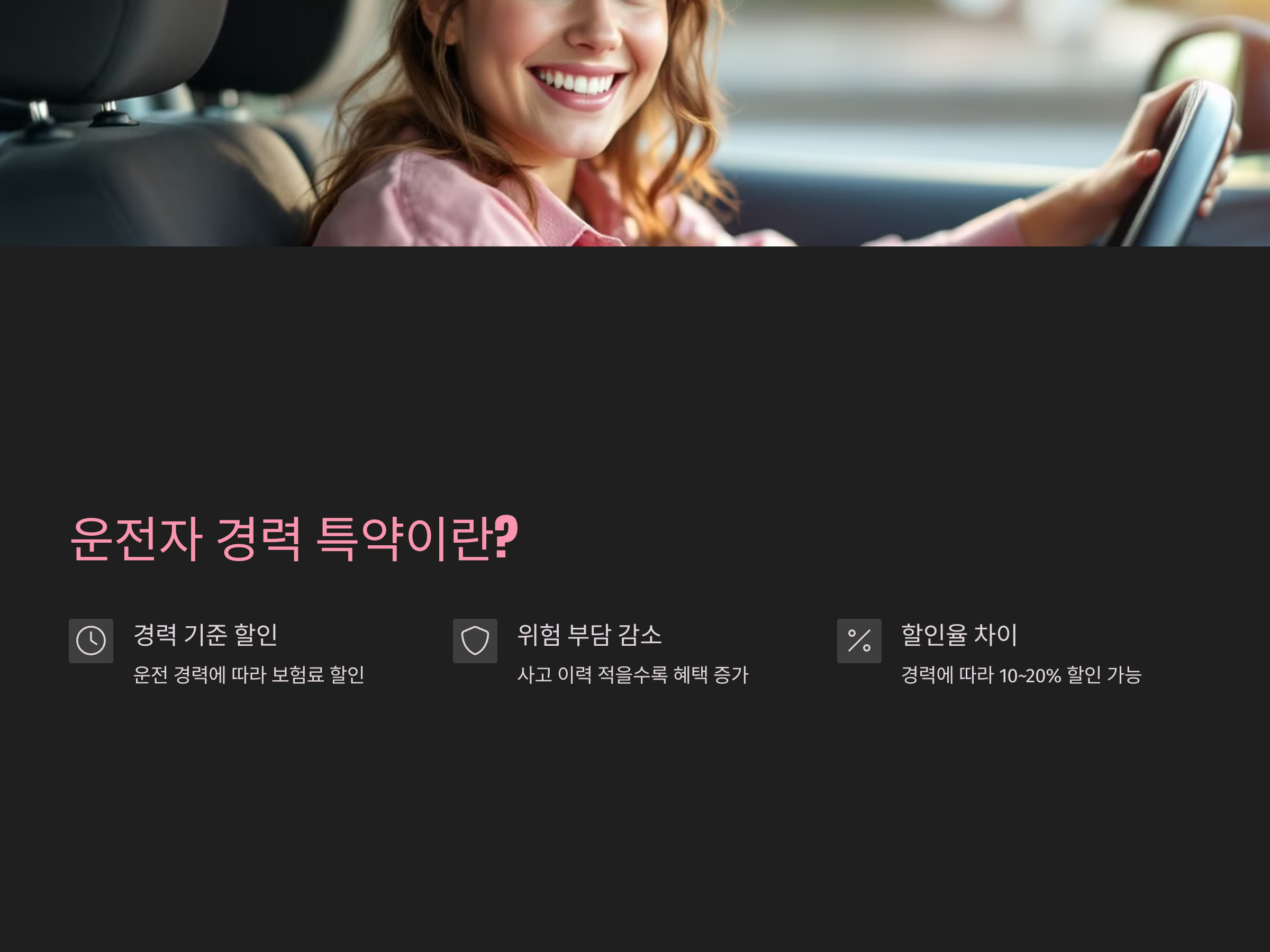 운전자 경력 특약은 보험사가 운전자의 운전 경력에 따라 보험료를 할인하거나, 특정 보장을 추가로 제공하는 특약입니다. 주로 운전자가 사고를 일으킨 이력이 적고, 경력이 오래된 경우, 보험사는 그만큼 위험 부담이 적다고 판단해 할인 혜택을 제공합니다. 이 특약은 사고를 자주 일으킨 운전자가 아닌 이상 보험료를 절약할 수 있는 좋은 방법이 될 수 있습니다.