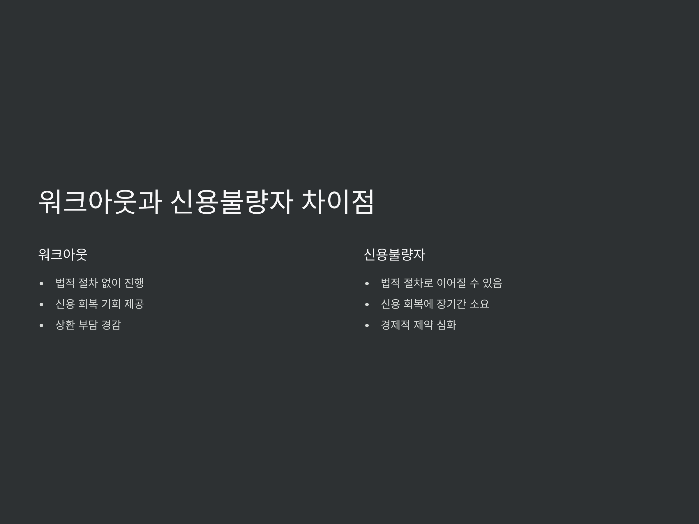 워크아웃과 신용불량자의 차이점