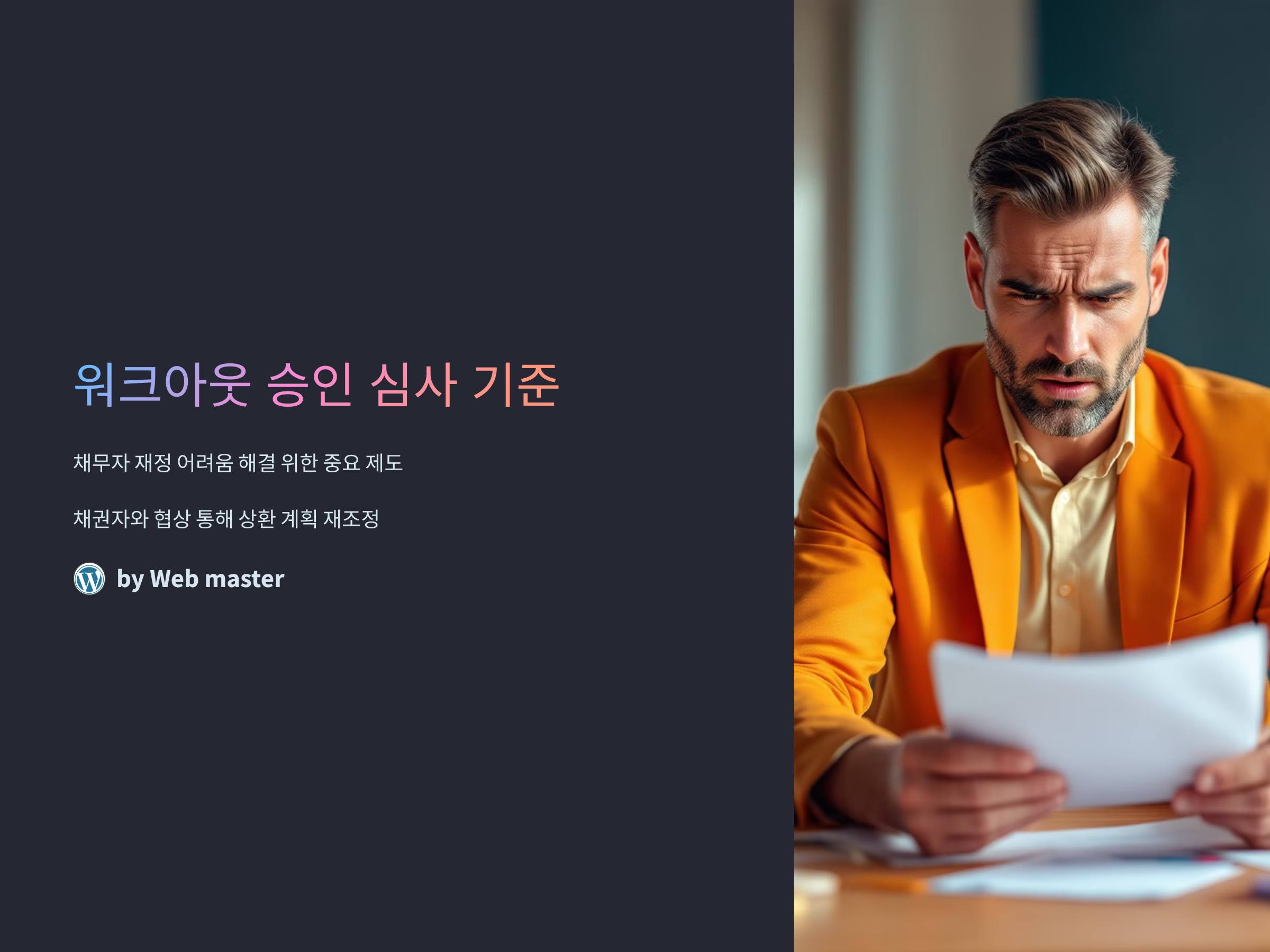 워크아웃 제도는 채무자에게 재정적 어려움에서 벗어나 회생할 수 있는 기회를 제공하는 중요한 제도입니다. 이는 채무자가 직면한 어려움을 해결하기 위해 채권자와 협상하여 상환 계획을 재조정하는 과정으로, 금융 기관과의 협의가 중요한 요소가 됩니다. 하지만 워크아웃이 승인되기 위해서는 특정한 심사 기준을 충족해야 합니다. 본 포스트에서는 워크아웃 승인 심사 기준에 대해 자세히 알아보고, 어떻게 심사가 이루어지는지에 대한 구체적인 내용을 설명합니다.