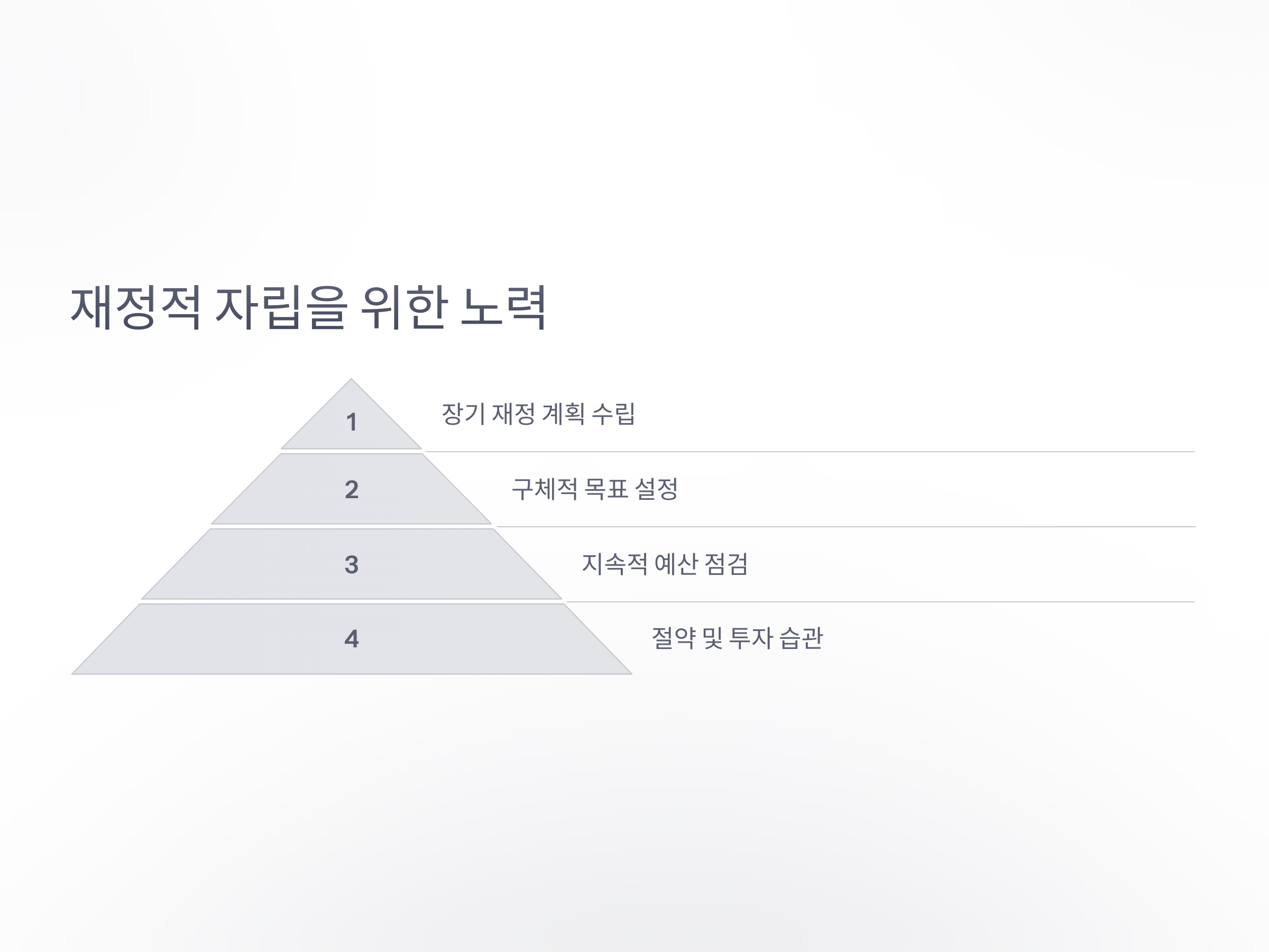 장기적인 재정 계획을 세우고, 목표를 설정하는 것이 중요합니다. 예를 들어, 집을 구매하려면 얼마나 돈을 모아야 하는지, 자녀 교육비를 마련하려면 어떻게 준비할지 등을 구체적으로 계획합니다. 이러한 지속적인 노력은 재정적으로 안정적인 미래를 만들어가는 길이 될 것입니다.