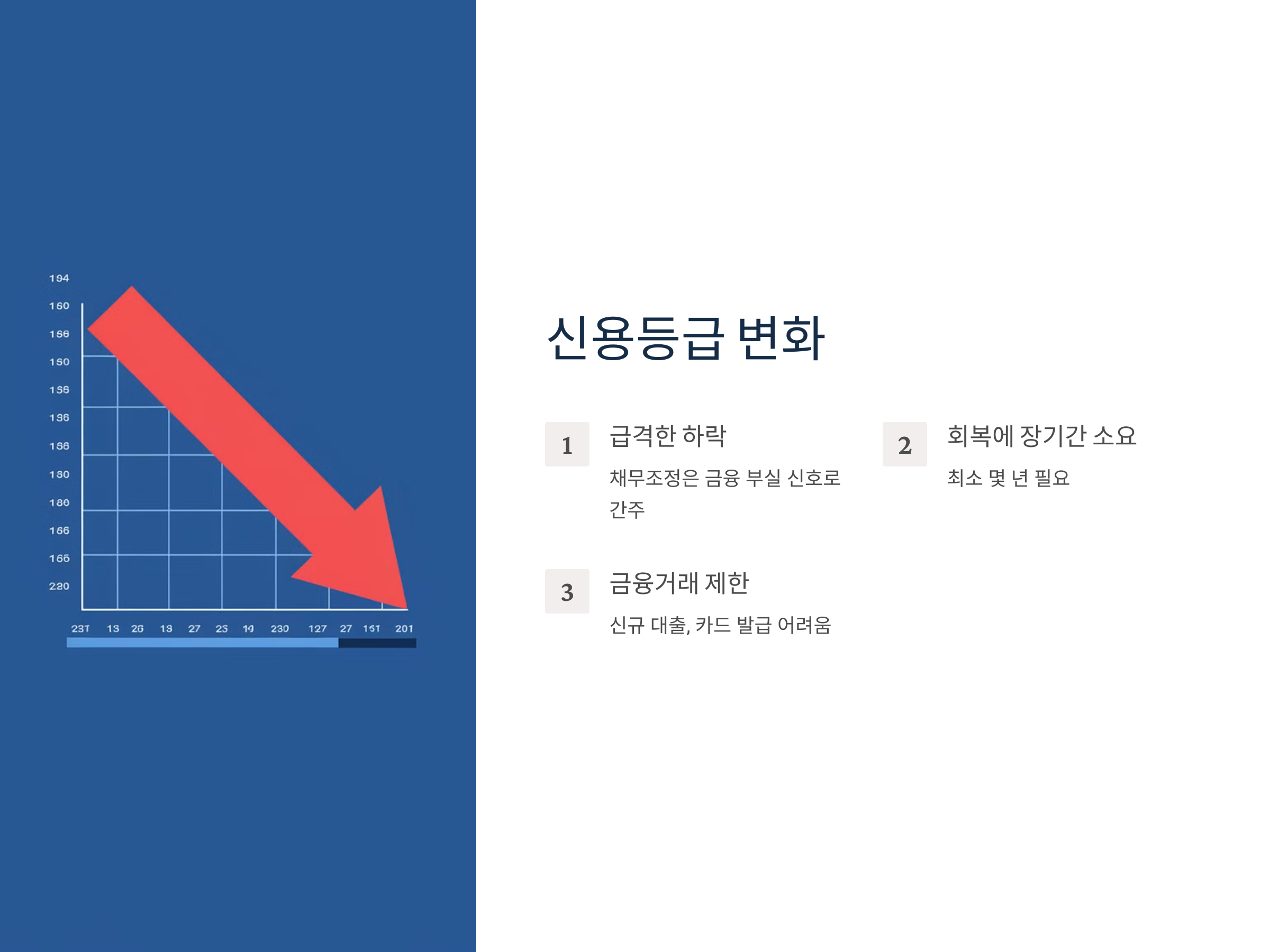 - 향후 신용회복 기간 증가: 신용등급이 회복되려면 최소 몇 년의 시간이 필요할 수 있습니다.
