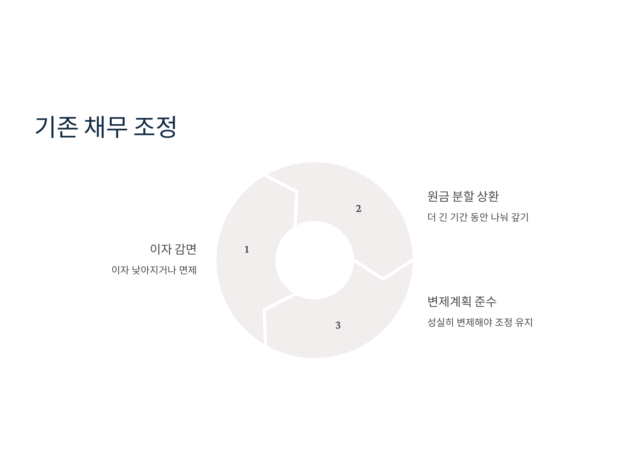 - 이자 감면 및 원금 분할 상환: 원금은 대부분 유지되지만, 이자가 낮아지거나 면제될 수 있습니다.