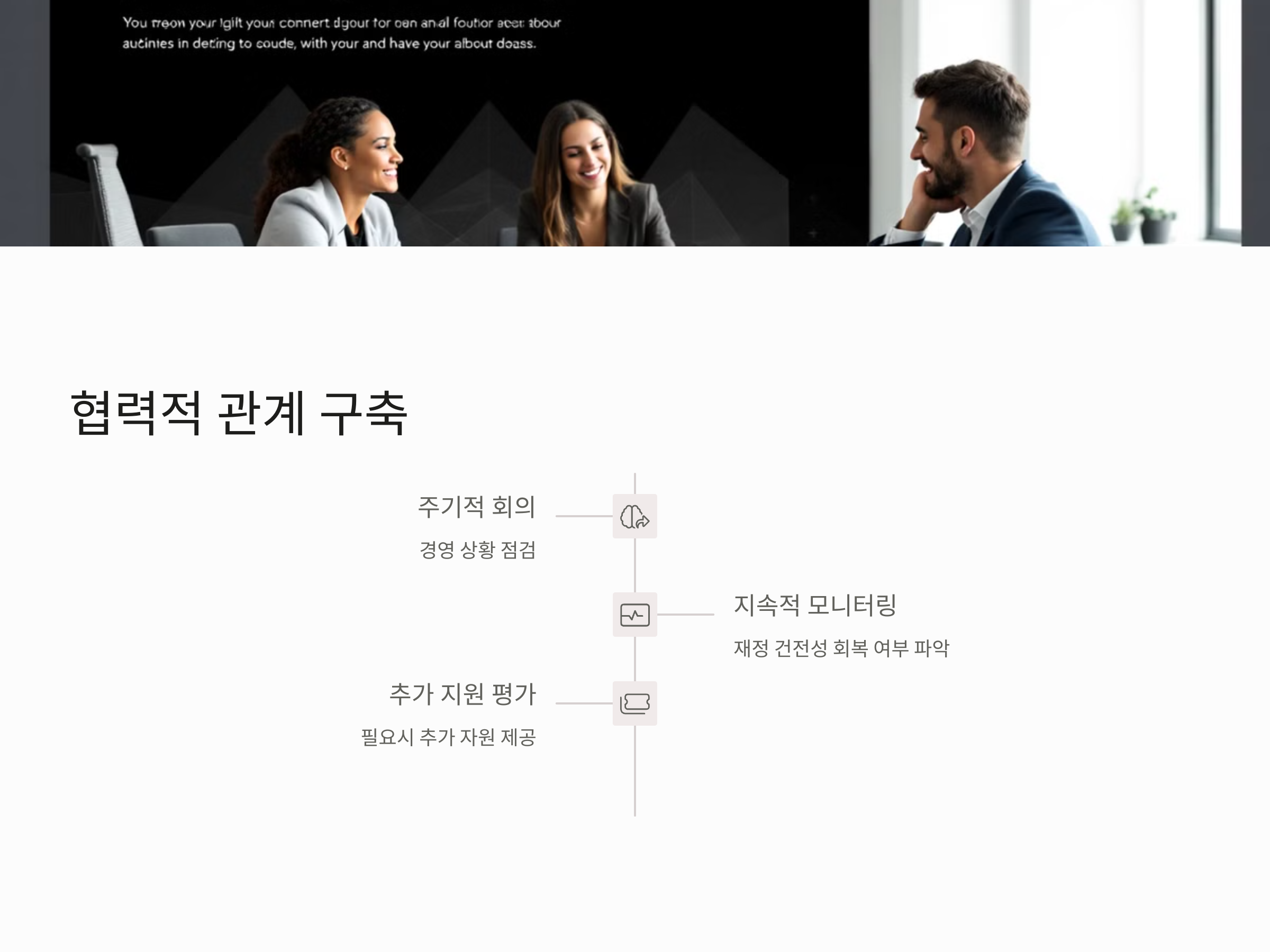 또한, 금융기관은 기업에 대해 지속적인 모니터링을 진행하면서, 기업의 재정 건전성 회복 여부를 파악하고, 추가적인 지원이 필요한지 여부를 평가해야 합니다. 이러한 협력적 접근 방식은 기업의 회생을 돕는 것뿐만 아니라, 금융기관의 리스크 관리에도 중요한 역할을 합니다. 기업이 회복하면 금융기관은 안정적인 수익을 창출할 수 있기 때문입니다.