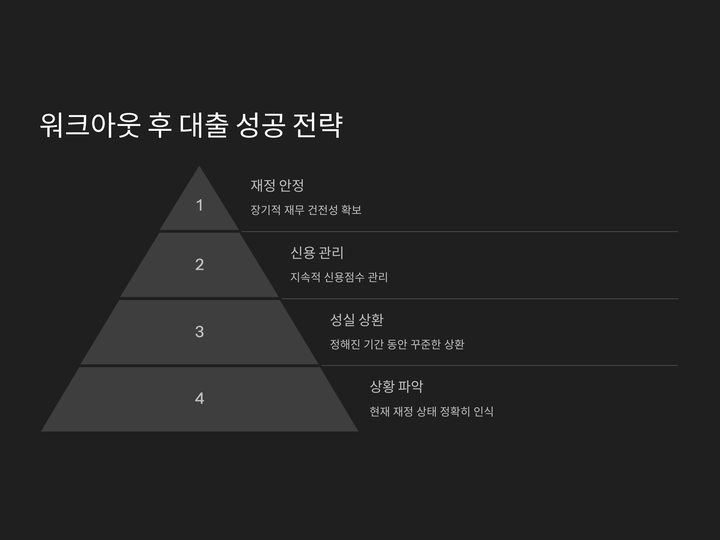 워크아웃 승인 후 대출을 고려할 때에는 다음 사항을 유의해야 합니다: