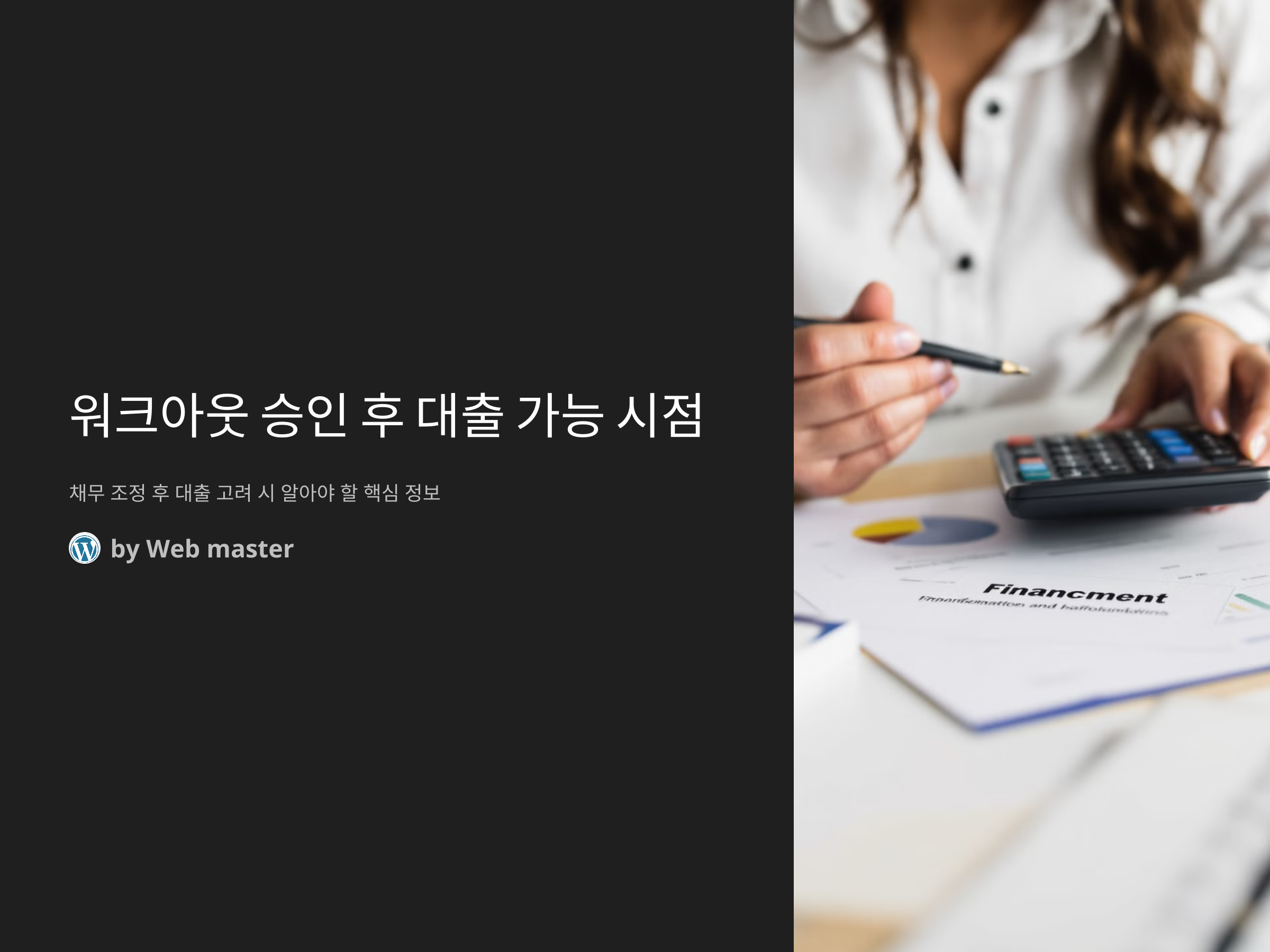 금융기관과의 채무 조정 프로그램인 개인워크아웃을 통해 채무를 재조정한 후, 추가적인 대출을 고려하는 분들이 많습니다. 그러나 워크아웃 승인 후 새로운 대출을 받는 것은 여러 제약이 따르며, 신중한 접근이 필요합니다. 이번 글에서는 워크아웃 승인 후 대출 가능 시점과 관련된 주요 사항을 자세히 살펴보겠습니다.
