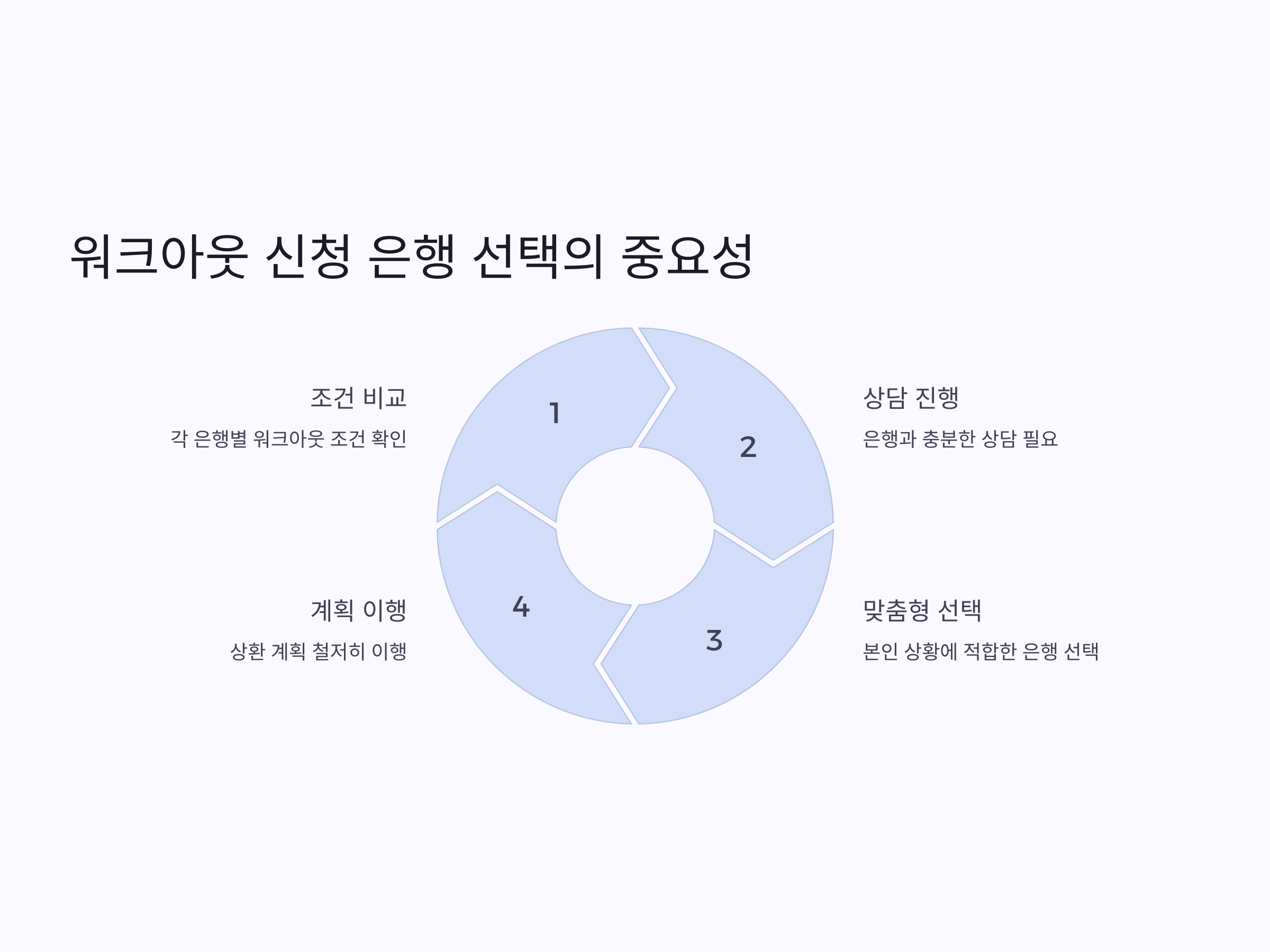 워크아웃을 신청할 수 있는 은행은 여러 곳이 있지만, 그 중에서도 주요 은행들은 비교적 다양한 혜택과 조건을 제공합니다. 각 은행의 정책에 따라 신청 조건이 다를 수 있으므로, 미리 각 은행의 정책을 확인하는 것이 좋습니다.