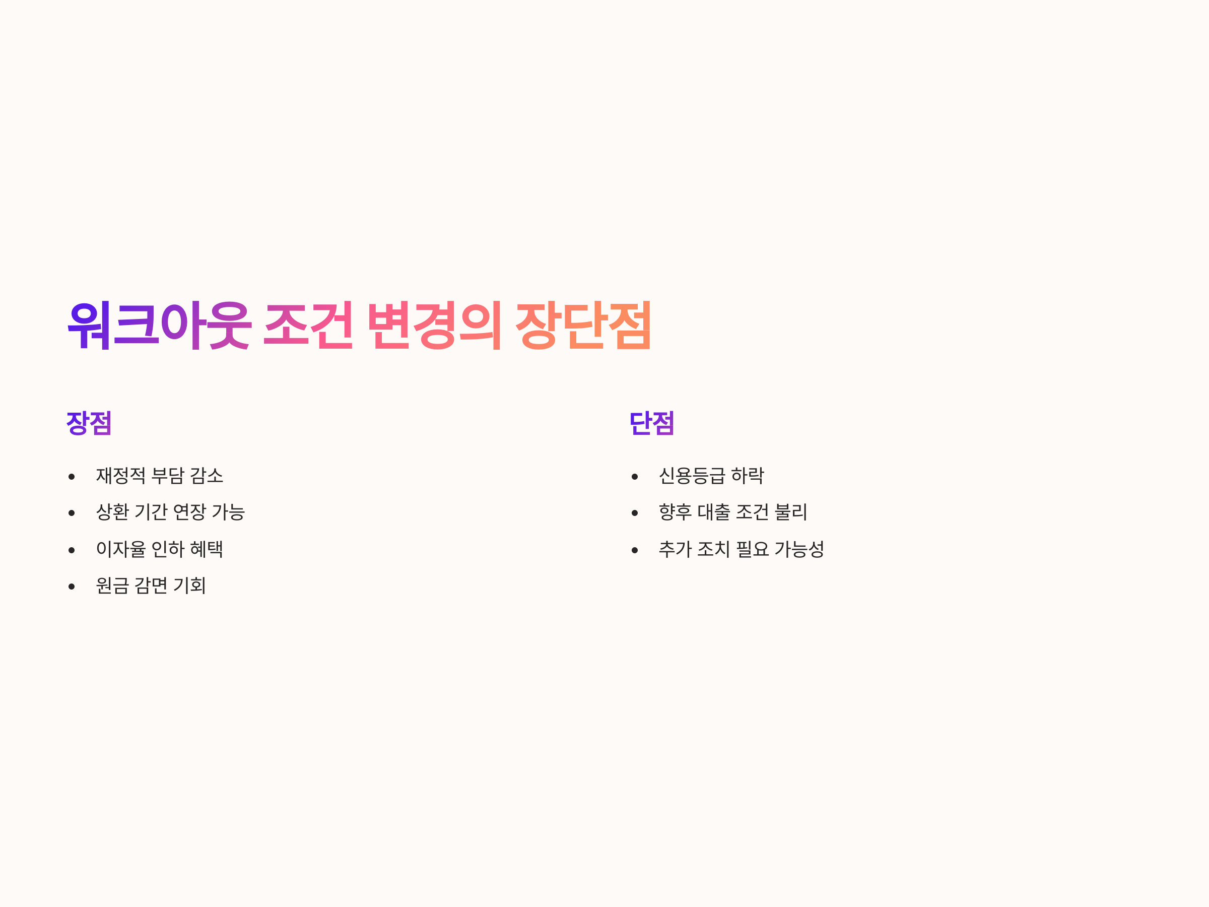 워크아웃 신청 후 대출 조건 변경의 장단점