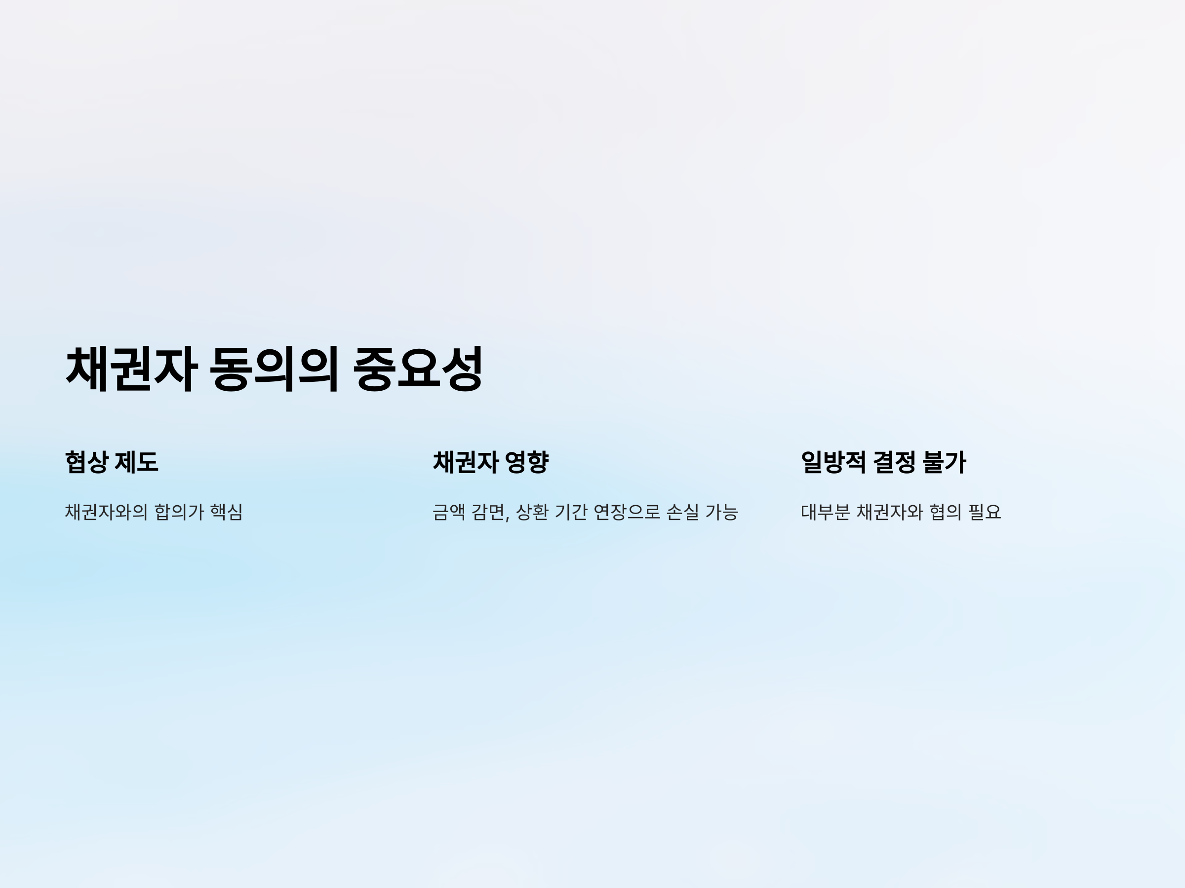 A2: 일부 경우에는 채권자 동의 없이도 진행될 수 있으나, 일반적으로 채권자의 동의가 필요하며, 동의 없이 진행될 경우 혜택이 제한될 수 있습니다.