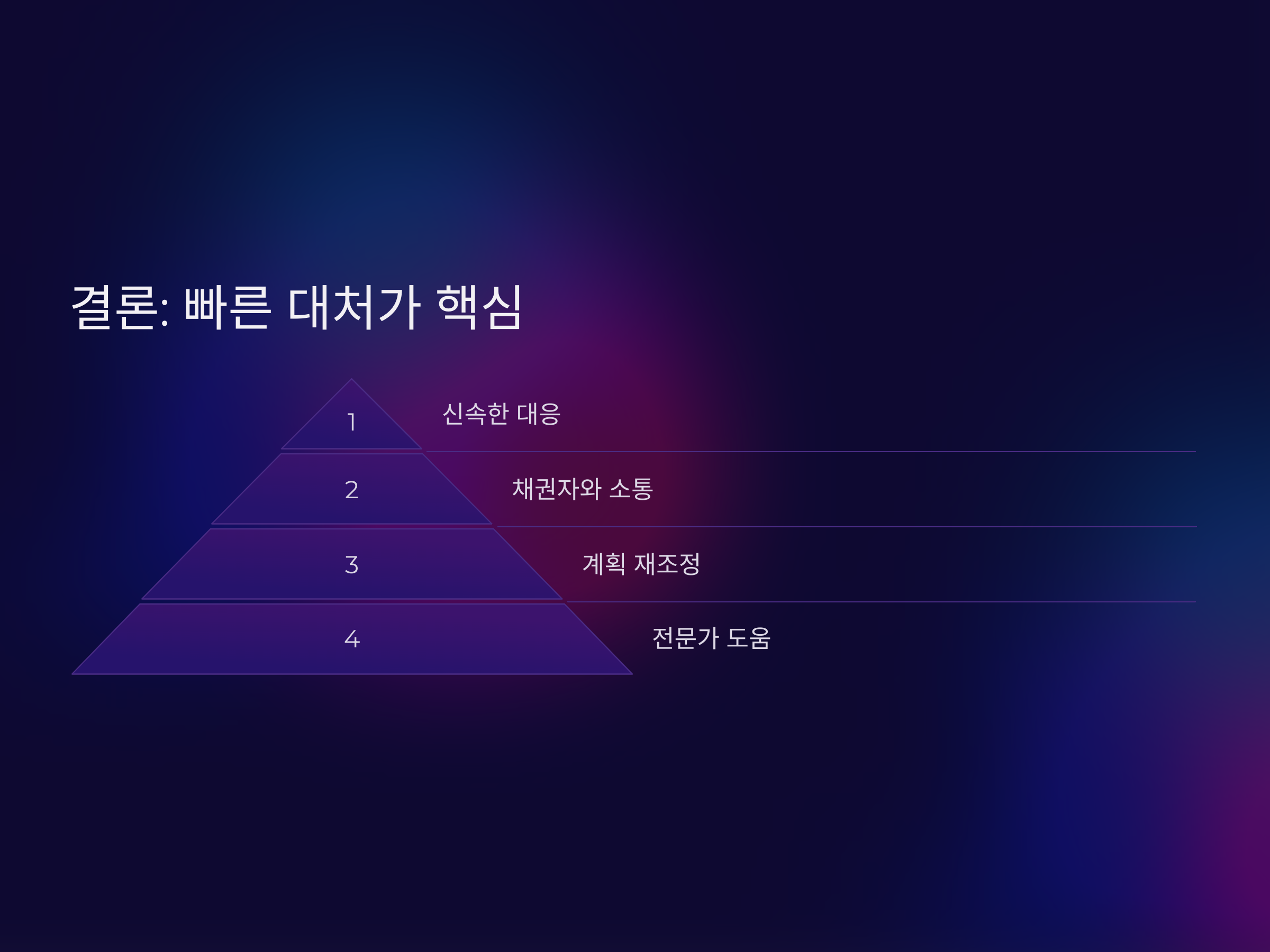 워크아웃 중 연체가 발생한 상황은 절대 방치하지 말고, 즉시 대응하여 문제를 해결해야 합니다. 이를 통해 채무자는 재정적인 회복을 이어갈 수 있으며, 더 나아가 워크아웃을 성공적으로 마무리할 수 있을 것입니다.