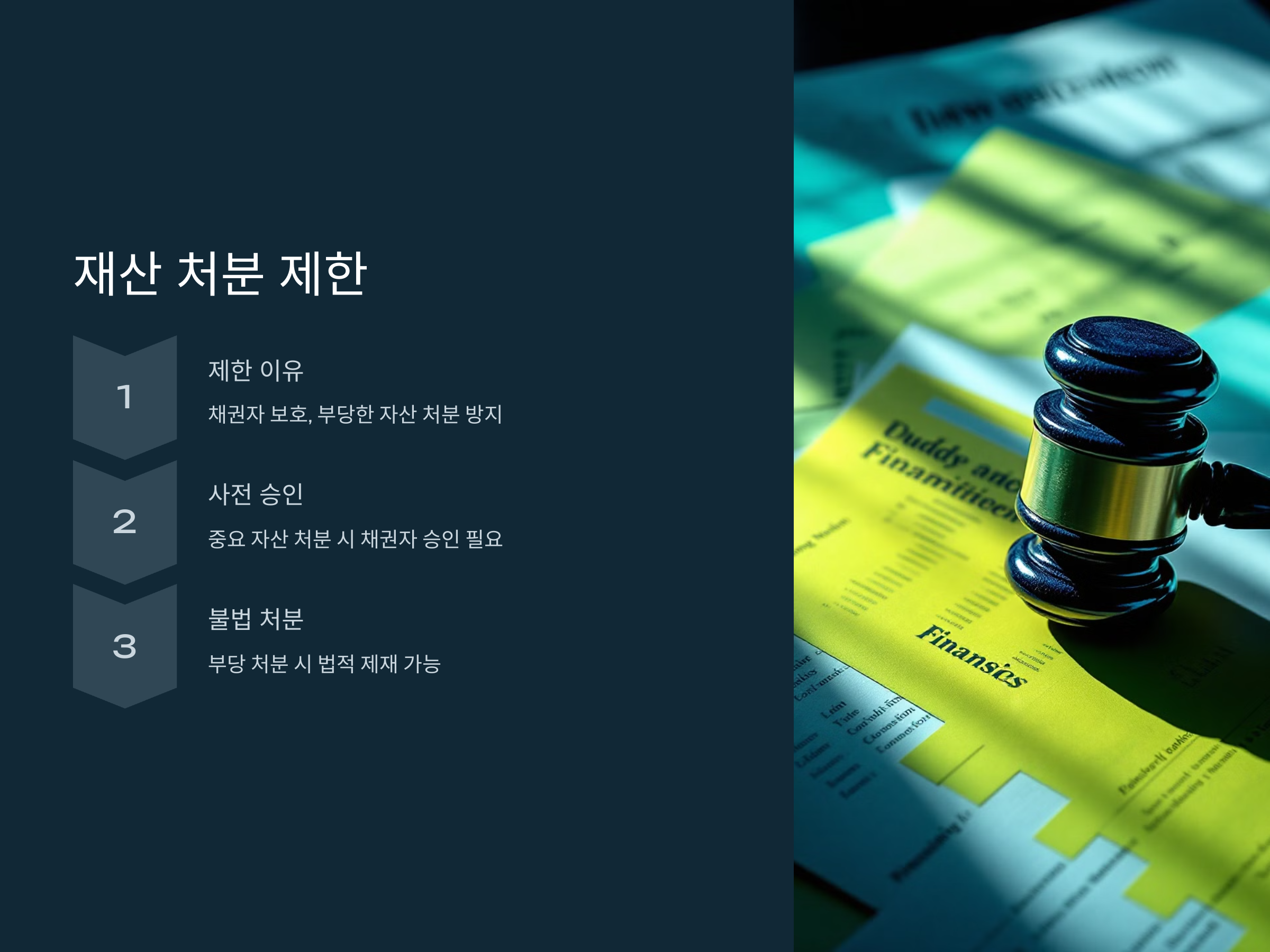 - 불법 처분 시 처벌: 재산을 부당하게 처분한 경우, 법적인 제재를 받을 수 있습니다. 이는 채무자의 재산을 보호하고, 공정한 채무 상환을 보장하기 위한 조치입니다.