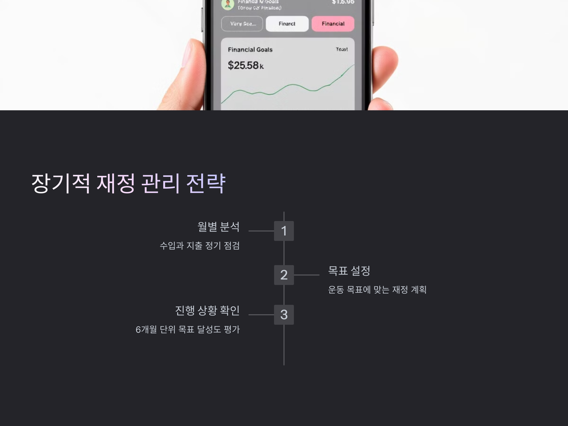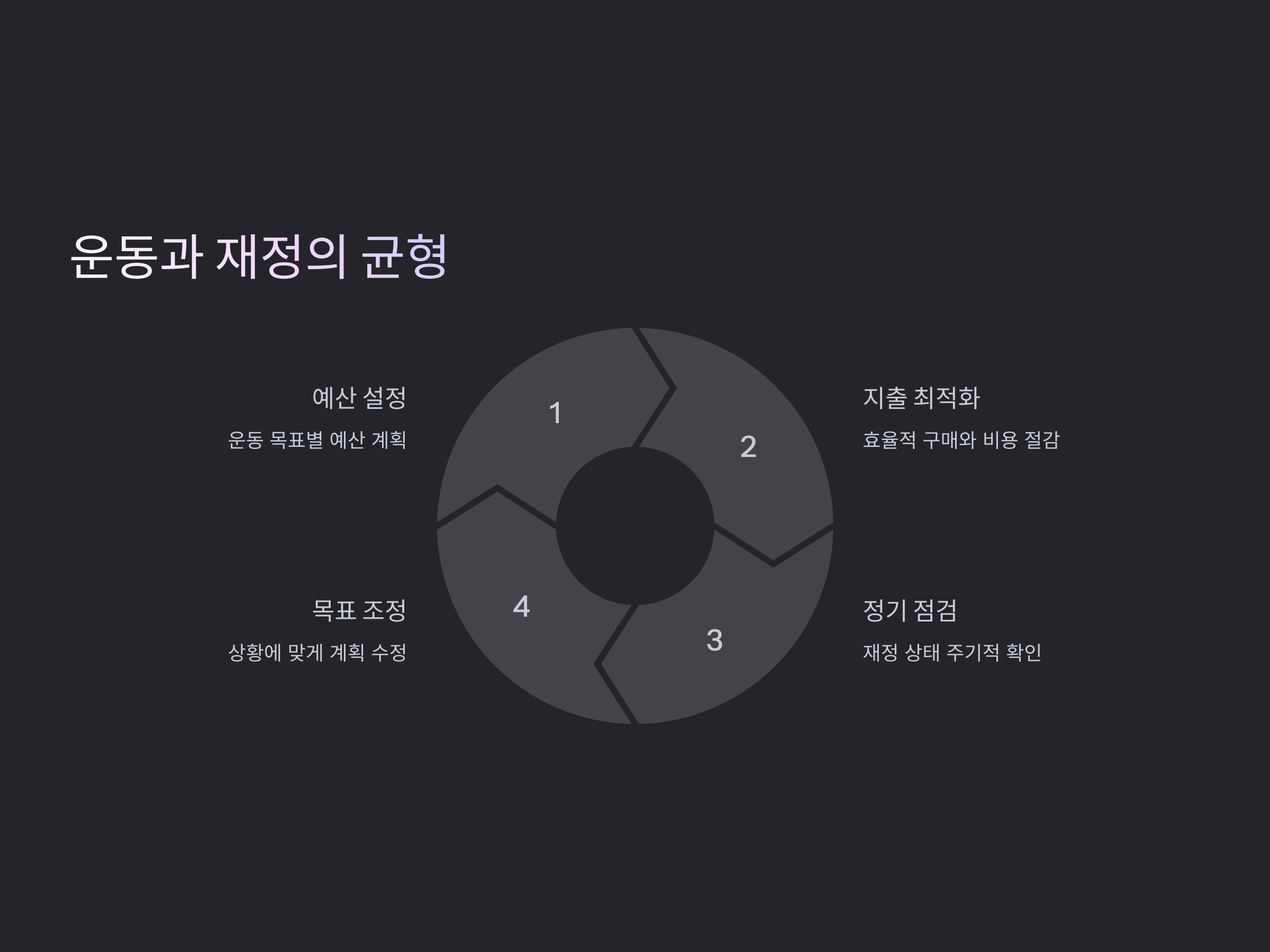 운동과 재정 관리의 장기적인 성공을 위해서는 계획적이고 지속적인 관리가 필요합니다. 운동을 시작할 때보다 중요한 것은 그 과정에서 발생하는 재정적인 부담을 어떻게 장기적으로 관리할 수 있을 것인가입니다. 이를 위해서는 매달 수입과 지출을 잘 분석하고, 운동과 관련된 지출 항목을 분류하여 예산을 설정하는 것이 필수적입니다.