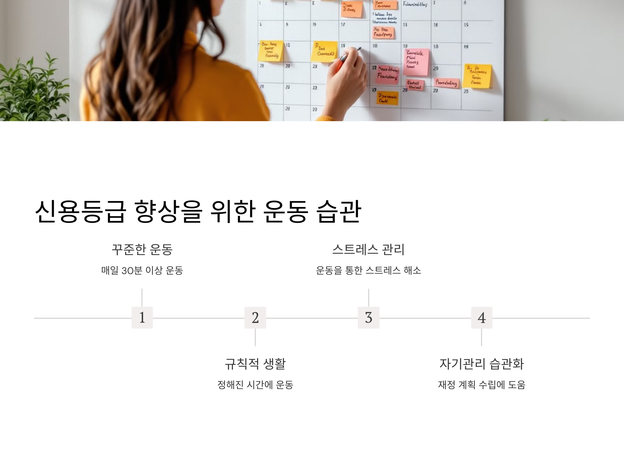 운동을 통해 신용등급을 높이기 위한 구체적인 방법은 무엇일까요? 우선, 꾸준한 운동 습관을 기르는 것이 중요합니다. 매일 30분 이상 운동을 하는 것만으로도 정신적, 신체적으로 많은 이점을 얻을 수 있습니다. 운동이 습관화되면 자연스럽게 체력뿐만 아니라 자기 관리 능력도 향상되며, 이는 재정 관리로 이어집니다.