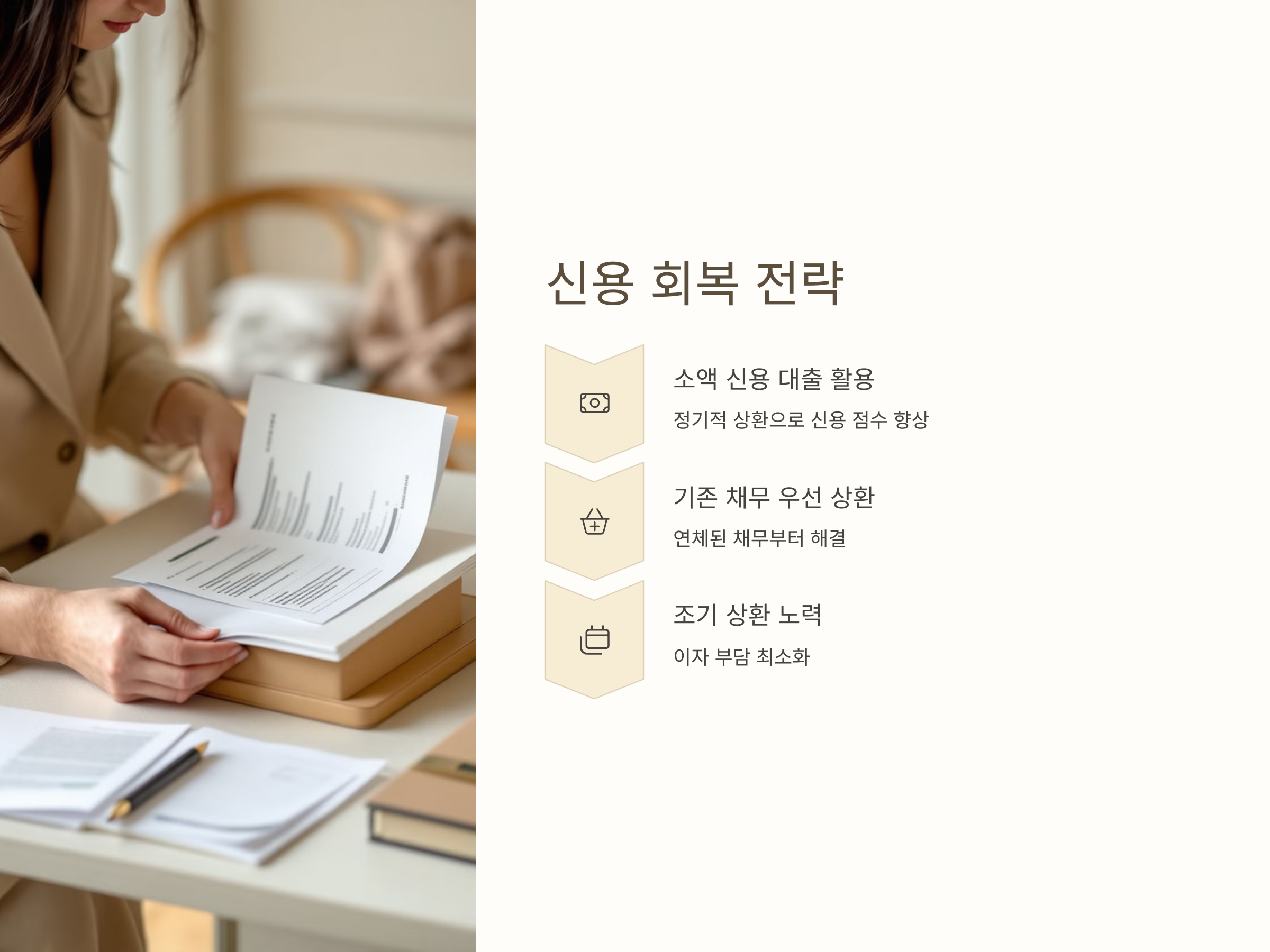 - 기존 채무 상환 우선: 기존의 채무를 먼저 상환하는 것이 중요합니다. 특히, 연체된 채무부터 먼저 해결해 나가며 신용 점수 회복을 도모하는 것이 좋습니다.