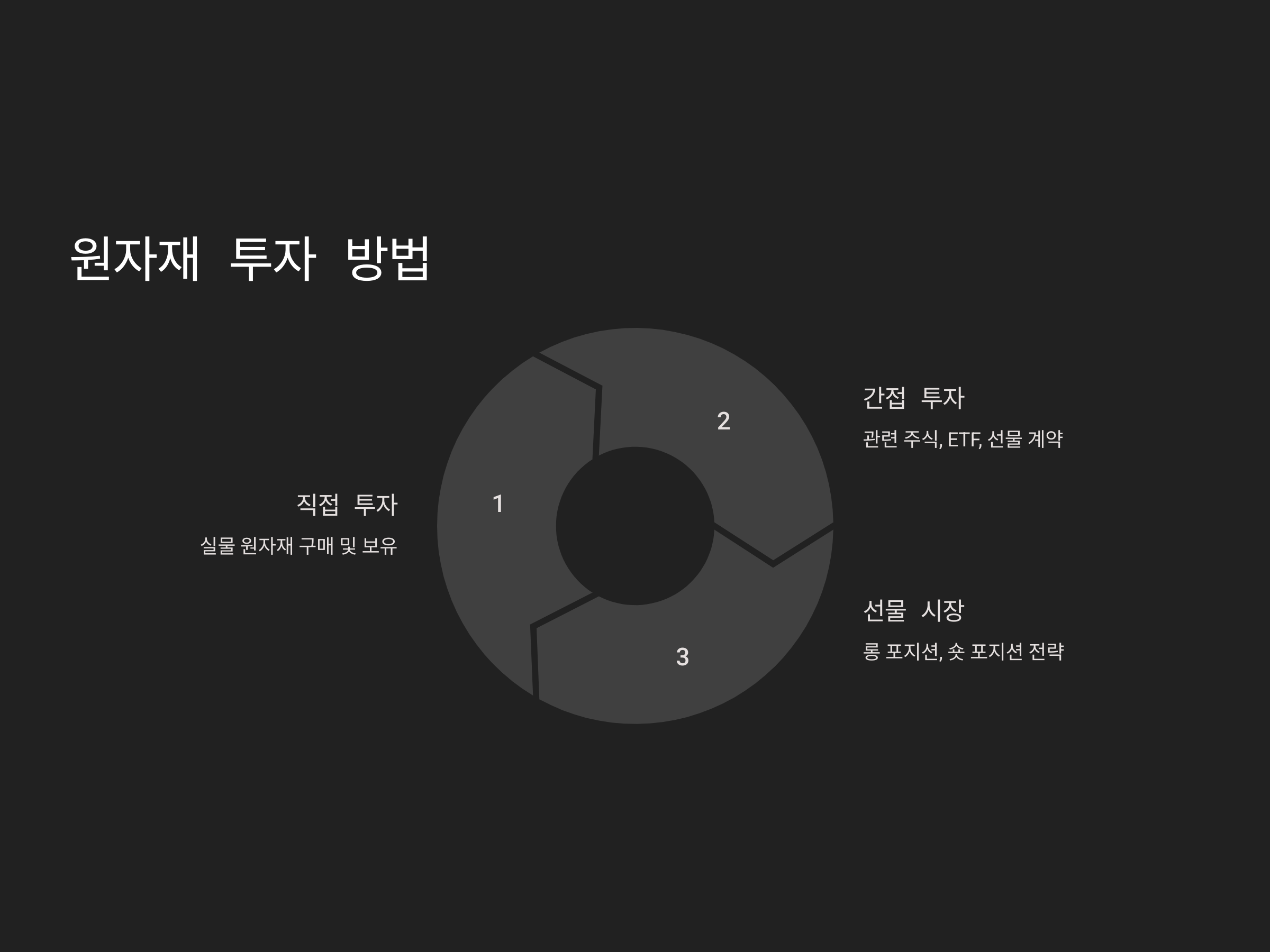 원자재에 직접 투자하는 방법과 간접적으로 투자하는 방법이 있습니다. 각각의 투자 방법에 따라 리스크와 보상 또한 달라지기 때문에, 자신의 투자 스타일과 목표에 맞는 방법을 선택하는 것이 중요합니다.