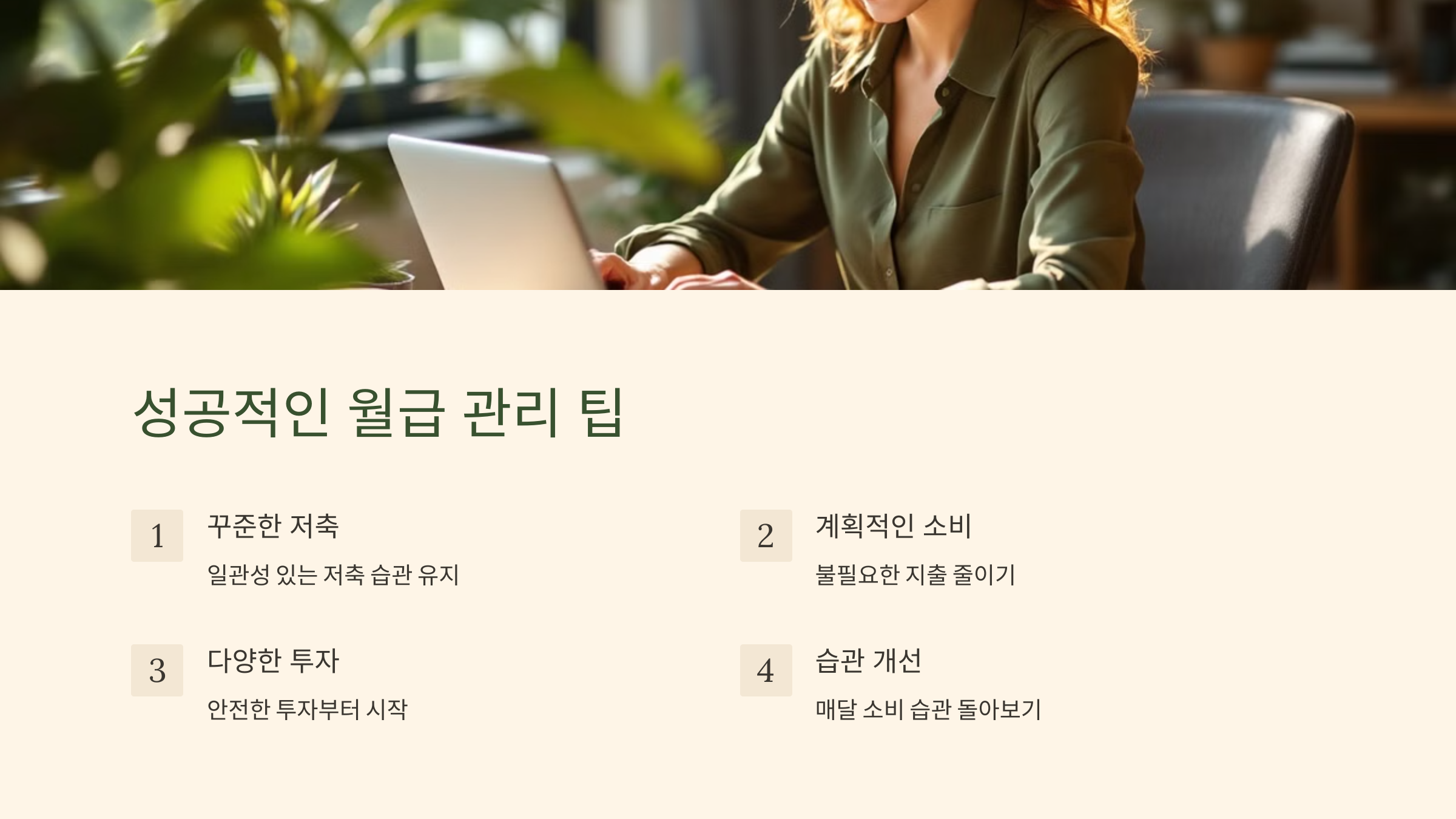- 지출 습관 개선: 목표를 달성하기 위해 월급 관리 습관을 정립하는 것이 필요합니다.