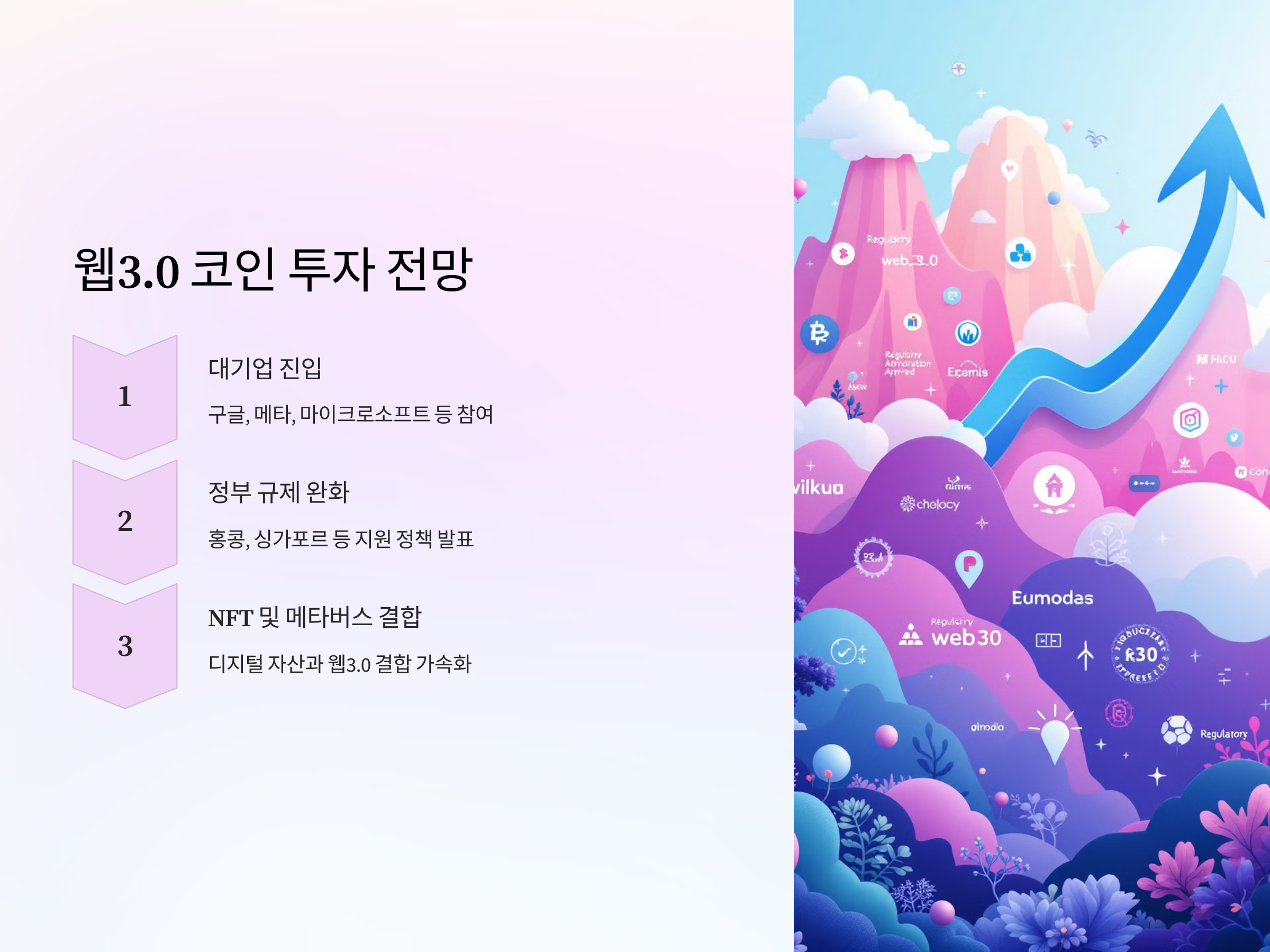 디지털 자산과 웹3.0의 결합이 가속화되면서 NFT, 디지털 아트, 가상 부동산 등이 새로운 투자 기회로 떠오르고 있습니다.