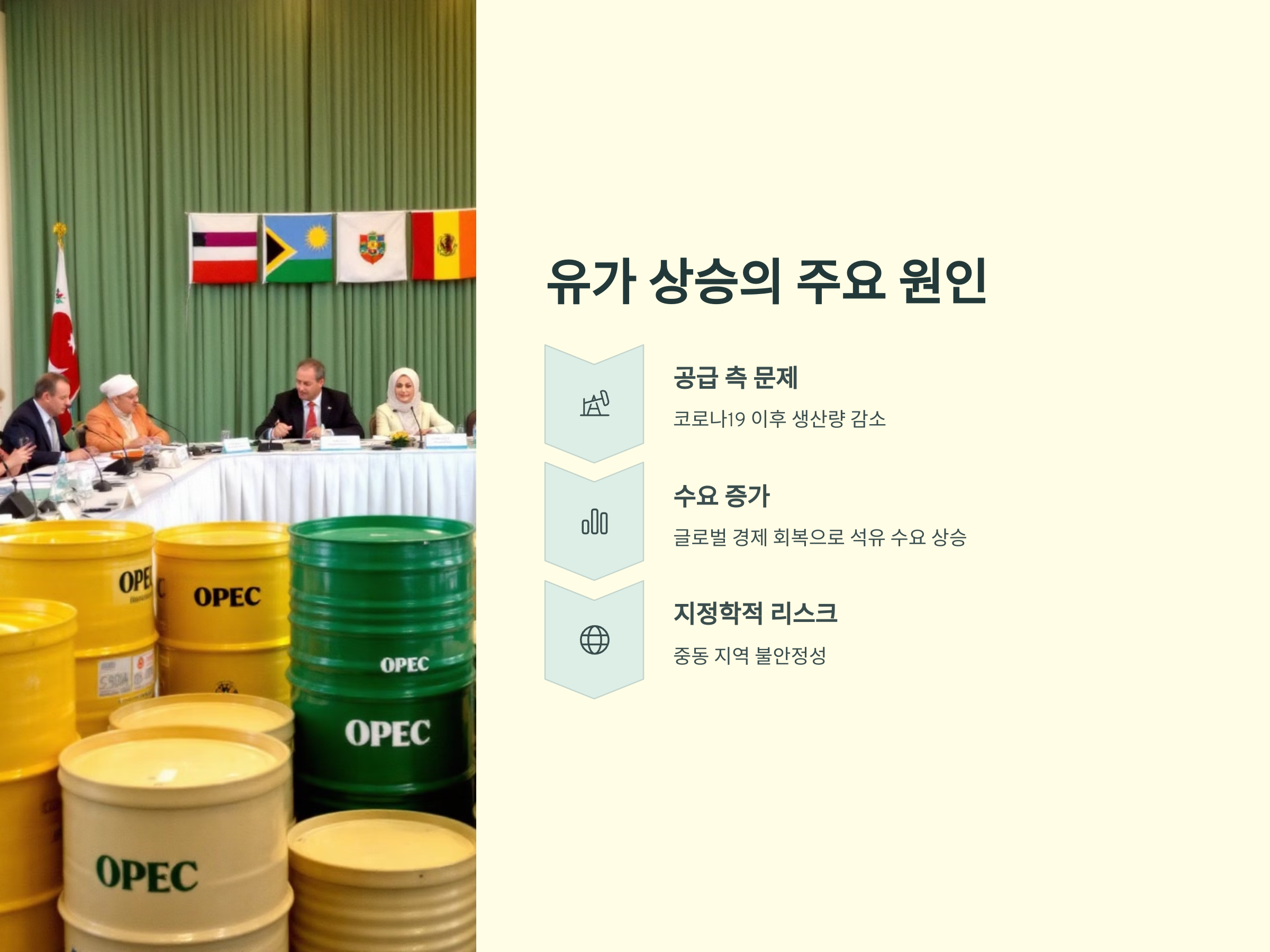유가 상승의 배경에는 여러 가지 요인이 복합적으로 작용하고 있습니다. 첫째, 공급 측 문제입니다. 코로나19 팬데믹 이후 석유 생산국들은 생산량을 감소시켰고, 이는 공급 부족을 야기했습니다. OPEC+와 같은 주요 산유국들은 생산을 조절하며 공급을 제한해왔습니다. 둘째, 수요 측 문제도 영향을 미칩니다. 글로벌 경제가 회복세를 보이면서 석유에 대한 수요가 증가하고 있습니다. 특히, 아시아 국가들의 경제 성장과 함께 에너지 소비가 급증하고 있어 유가 상승을 더욱 부추기고 있습니다.