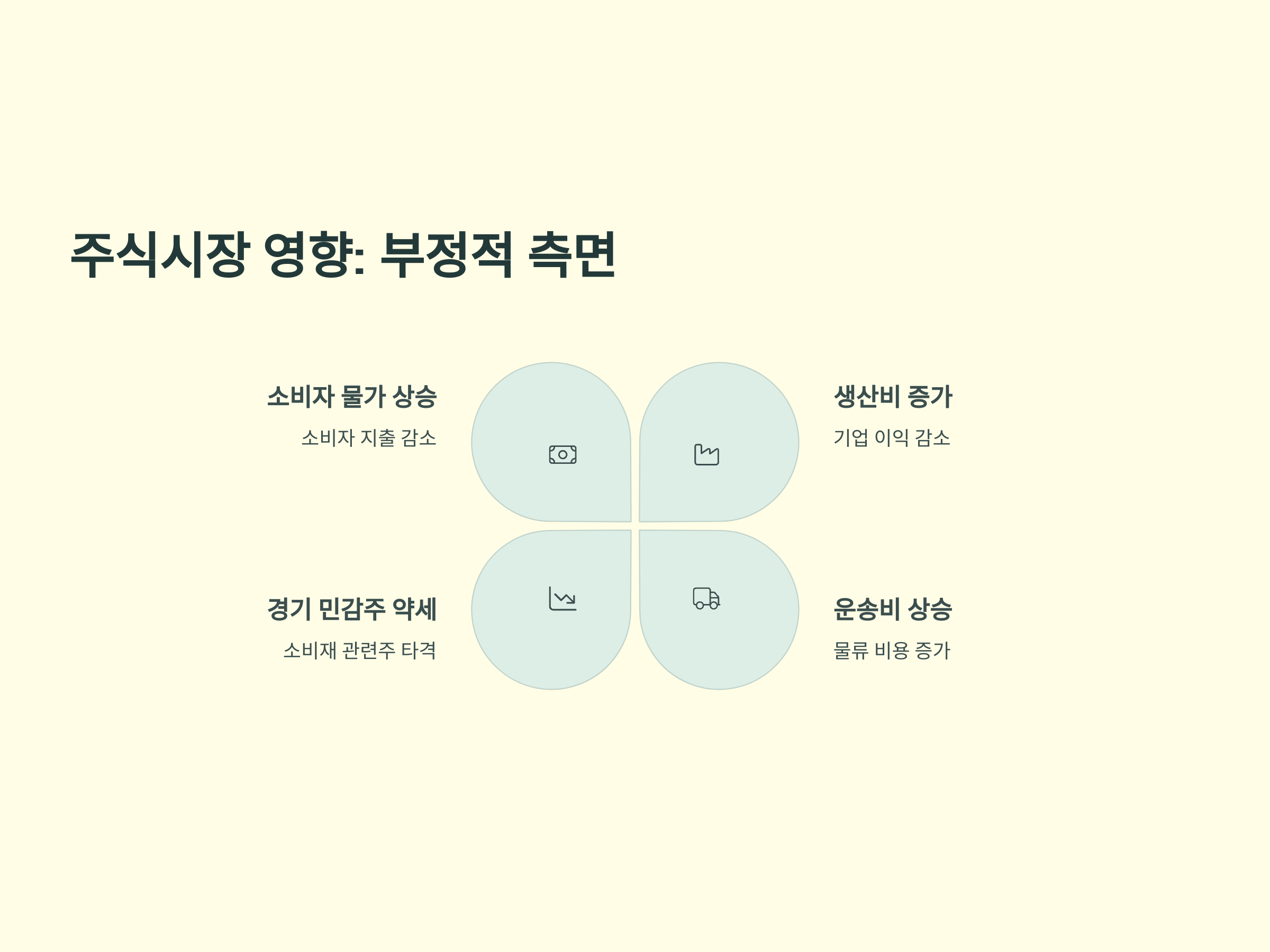 유가 상승은 중앙은행의 금리 정책에도 영향을 미칩니다. 에너지 가격 상승은 인플레이션을 자극할 수 있으며, 중앙은행은 이를 제어하기 위해 금리를 인상할 가능성이 높습니다. 금리가 인상되면 주식시장에서 자금이 빠져나가고, 특히 성장주나 기술주들에는 큰 타격을 줄 수 있습니다. 금리 인상은 또한 부채가 많은 기업들에게 부담을 줄 수 있어, 이들 기업의 주식 가격에 악영향을 미칠 수 있습니다.