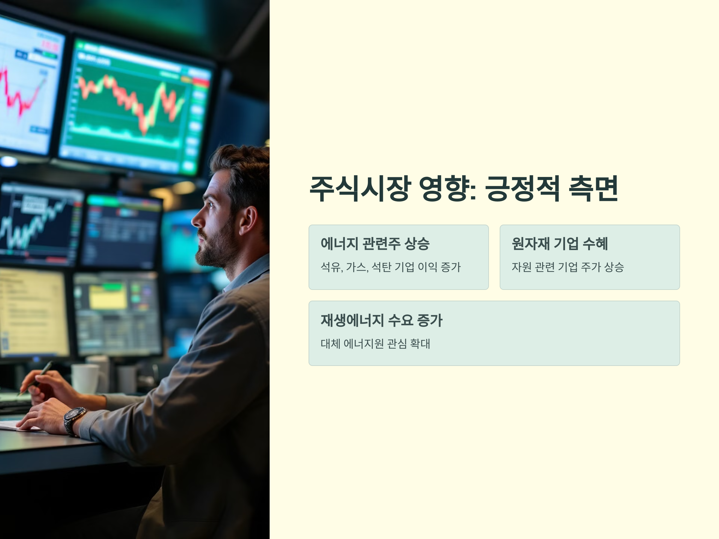 유가 상승은 주식시장에 여러 가지 영향을 미칩니다. 첫째, 에너지와 원자재 관련 주식들이 긍정적인 영향을 받을 수 있습니다. 석유, 가스, 석탄과 같은 자원 관련 기업들은 유가 상승에 따른 이익을 누릴 수 있습니다. 이는 투자자들이 에너지 관련 주식에 대한 수요를 높여 주식가격을 상승시키는 원동력이 됩니다. 예를 들어, 석유 생산 회사들이나 석유 정제 회사들은 유가 상승에 따라 더 높은 이익을 낼 수 있습니다.