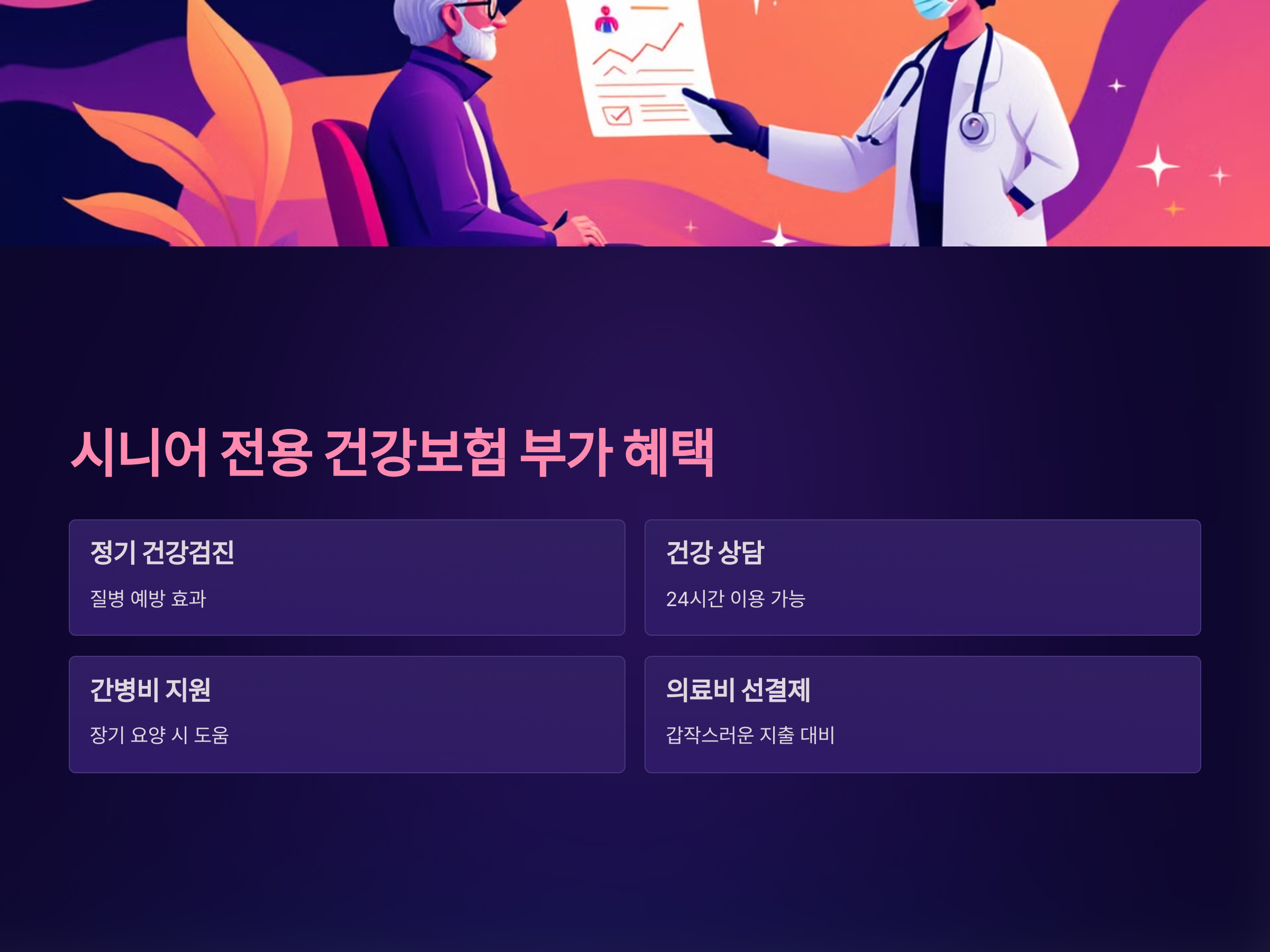 건강검진 지원, 간병 서비스, 상담 서비스 등 부가 혜택이 있는 상품을 선택하면 더 많은 혜택을 누릴 수 있습니다.