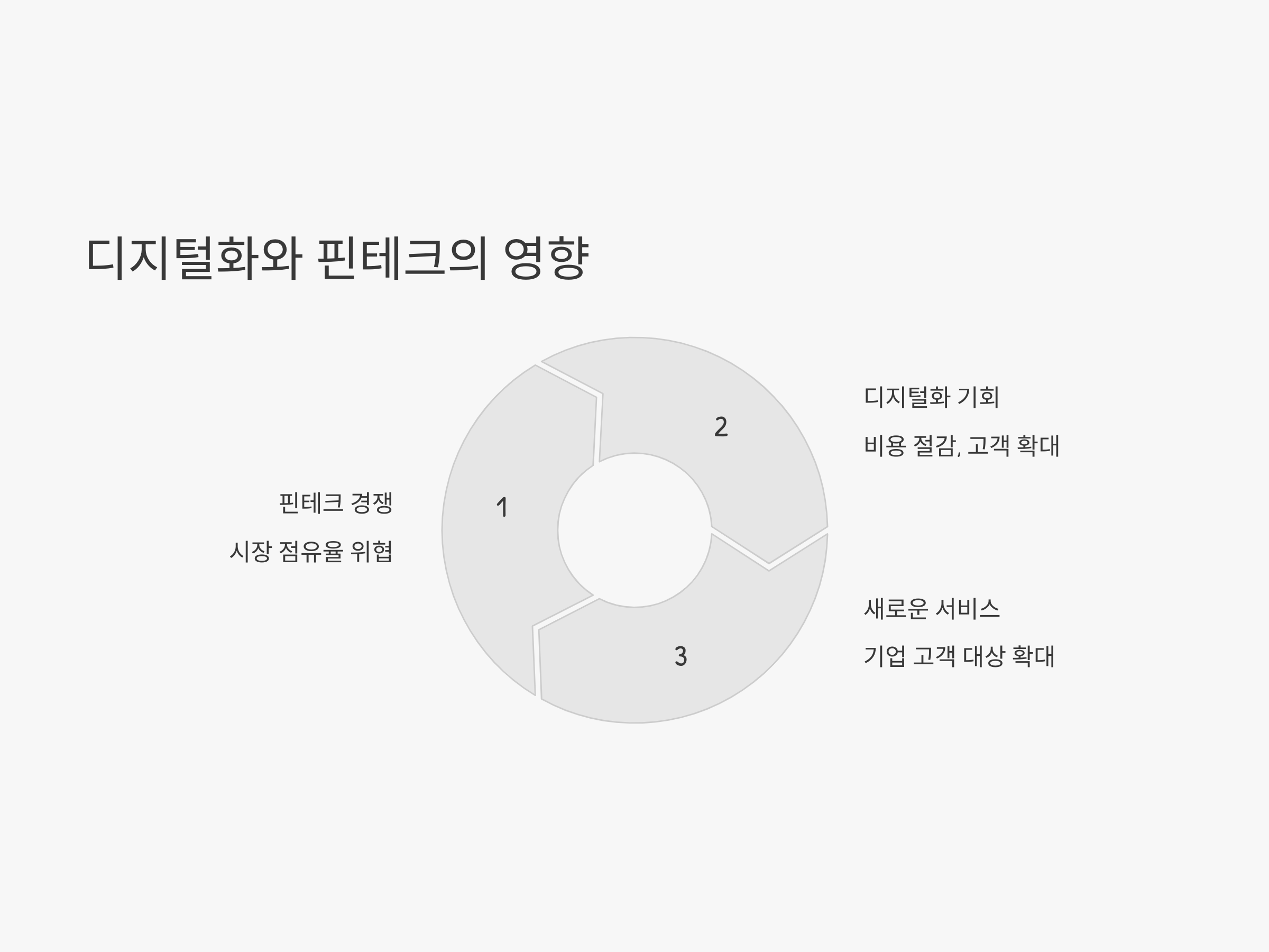 하지만 디지털화를 통해 은행들은 비용을 절감하고, 더 많은 고객에게 접근할 수 있는 기회를 얻게 됩니다. 온라인 뱅킹, 모바일 뱅킹 등은 은행의 고객층을 더욱 넓히는 역할을 하고 있으며, 이를 통해 은행들은 효율적인 운영을 할 수 있습니다. 또한, 디지털 플랫폼을 통해 기업 고객에게도 새로운 금융 서비스를 제공할 수 있는 기회를 제공합니다.