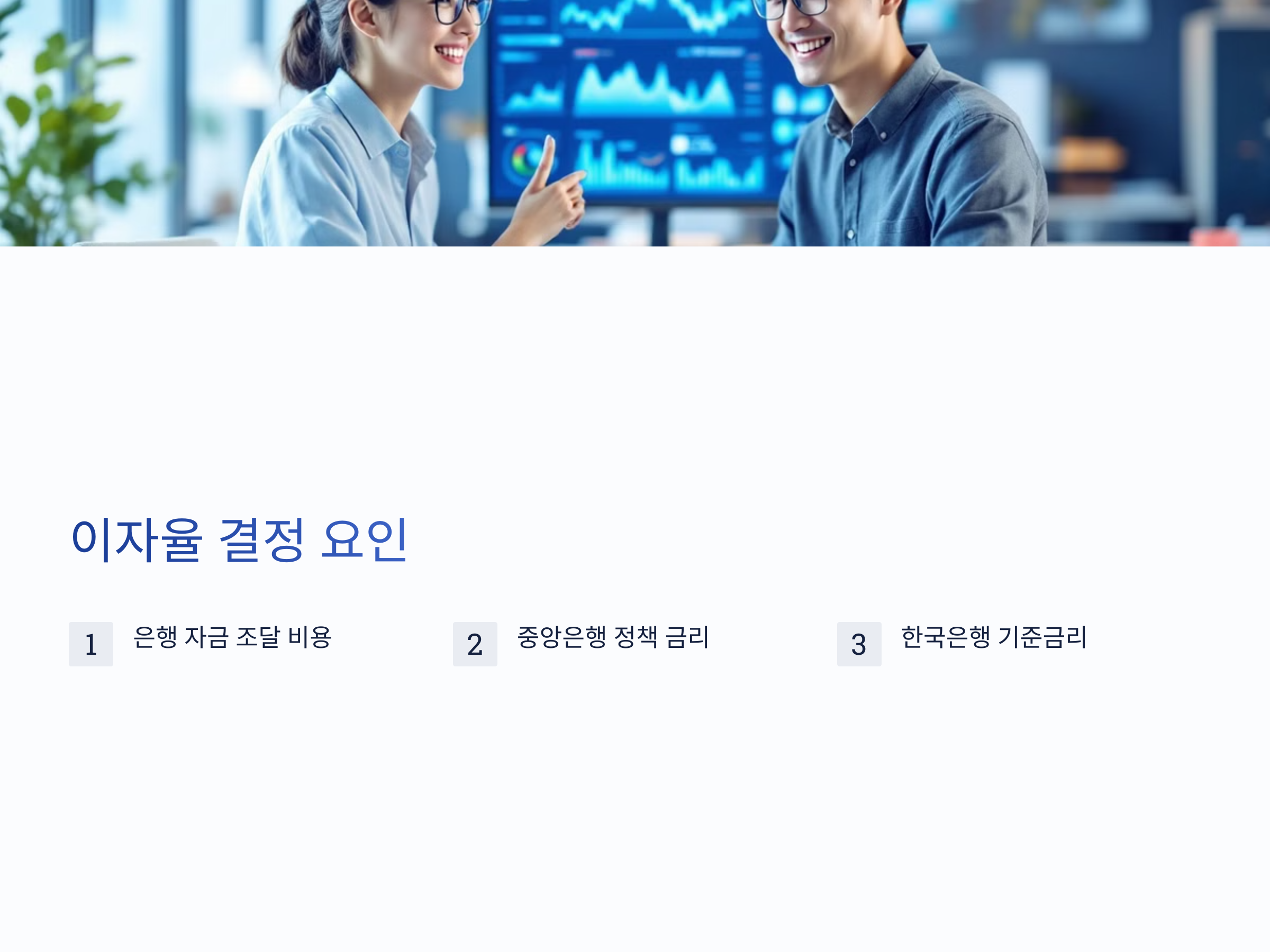 대출 이자율을 비교할 때 중요한 점은 단순히 이자율만 보는 것이 아니라, 전체 상환 금액을 고려하는 것입니다. 일부 은행에서는 이자율이 낮지만, 수수료나 추가 비용이 더 많이 발생할 수 있기 때문에, 전체 상환 비용을 계산해보는 것이 중요합니다.