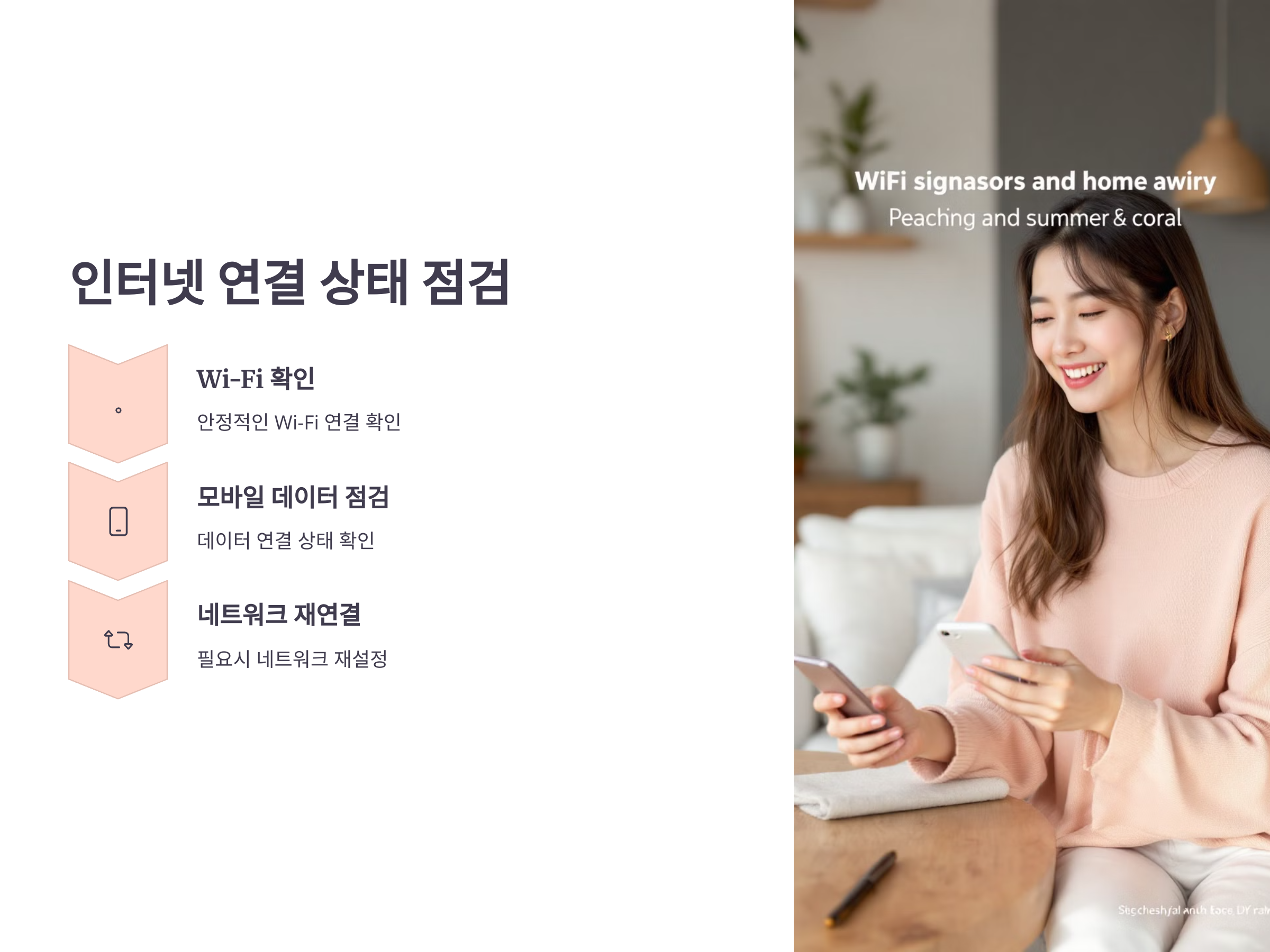 업데이트가 실패하는 주요 원인 중 하나는 인터넷 연결 상태입니다. Wi-Fi 네트워크나 모바일 데이터를 사용할 때 연결이 불안정하면 업데이트가 중단될 수 있습니다. 안정적인 Wi-Fi 환경에서 다시 시도하거나, 모바일 데이터를 사용할 경우 연결 상태를 점검해 보세요.