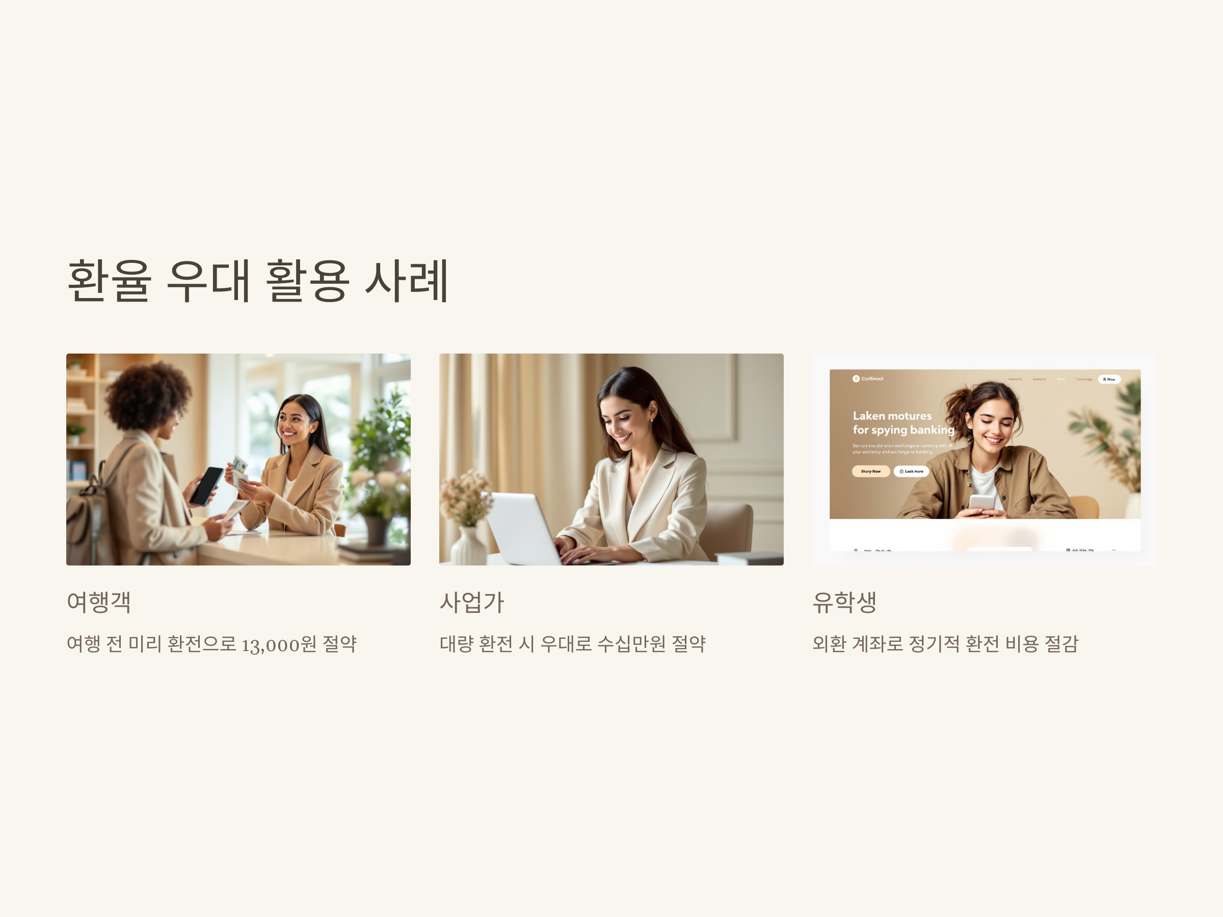 외환 예금을 보유한 고객에게는 환율 우대를 제공하는 경우가 많습니다. 예를 들어, 외환 예금에 일정 금액을 예치하면 더 좋은 환율로 외화를 환전해줍니다.