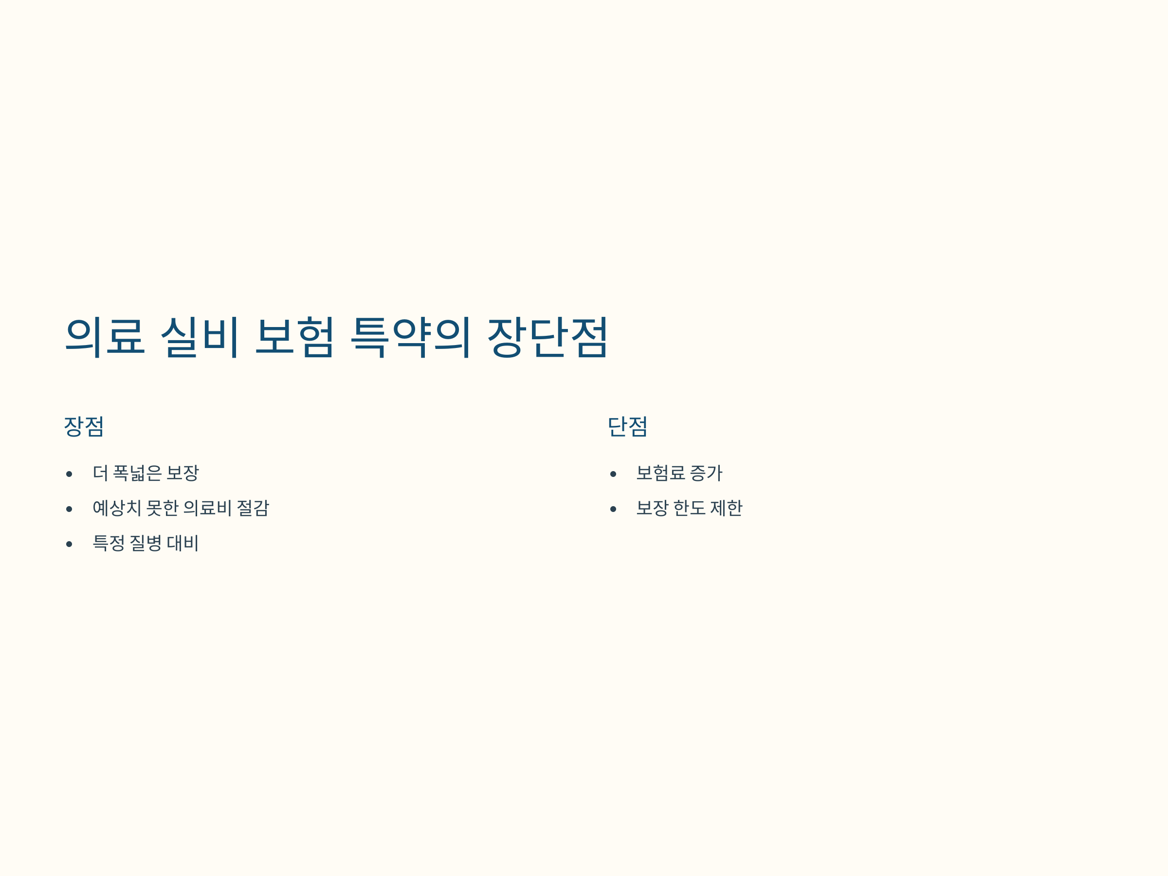 의료 실비 보험 특약은 여러 가지 장점이 있지만, 가입 전 단점도 고려해야 합니다. 이제 의료 실비 보험 특약의 장점과 단점을 살펴보겠습니다.