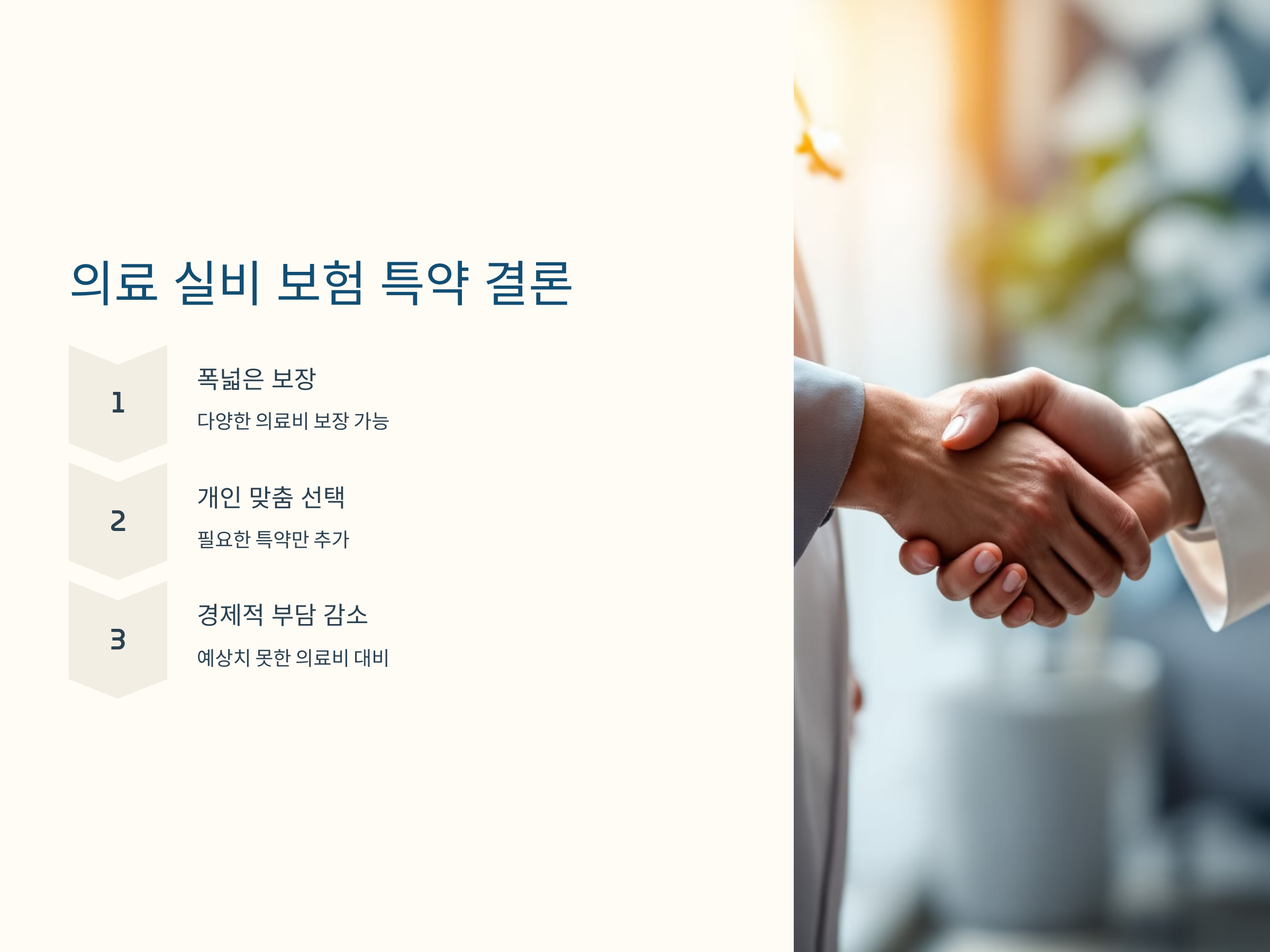 - 예상치 못한 의료비 절감: 외래 진료비, 치과 치료비 등 평소 부담이 큰 의료비를 절감할 수 있습니다.