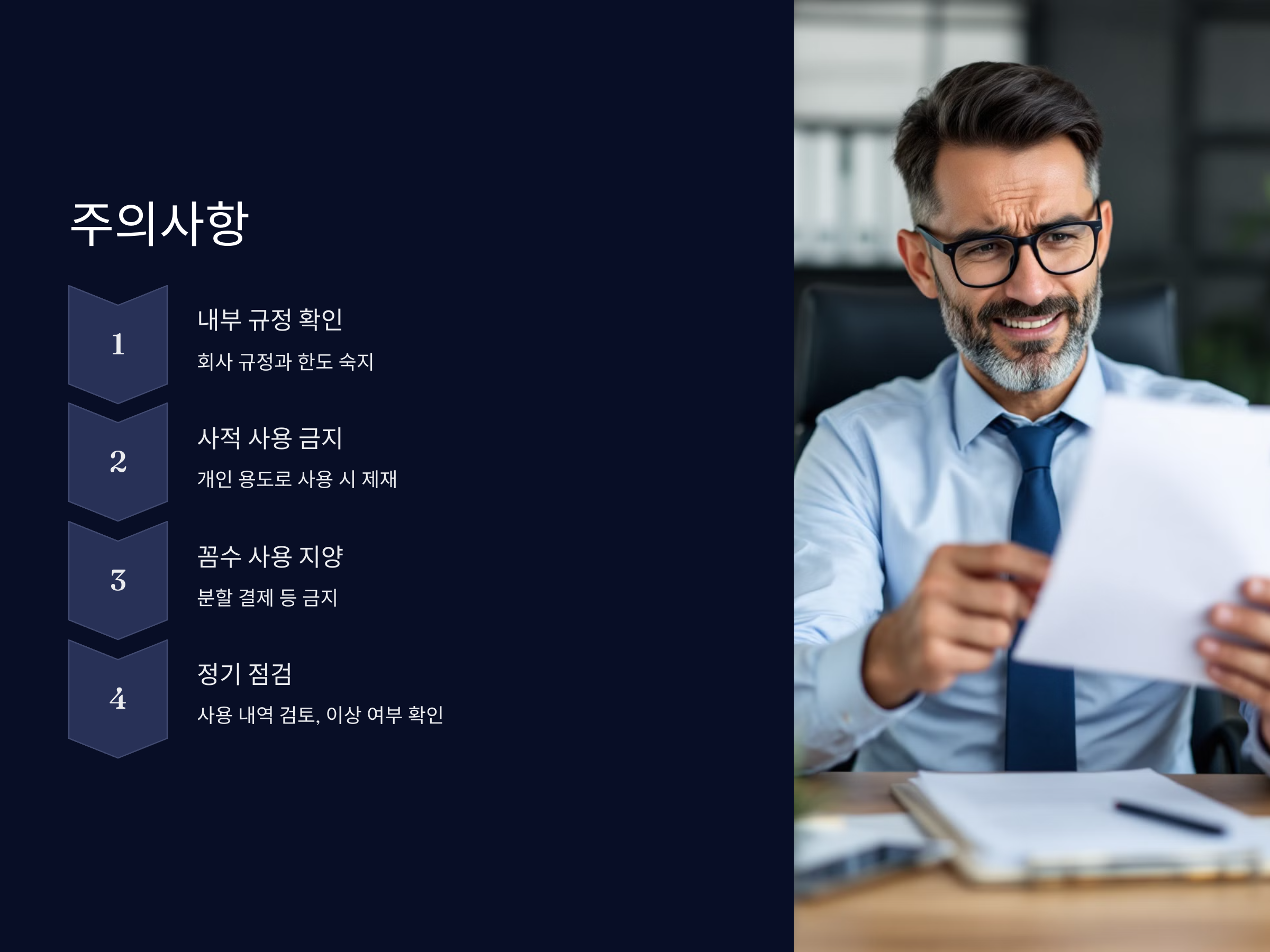 법인카드를 사용할 때 다음 사항을 반드시 체크해야 합니다.