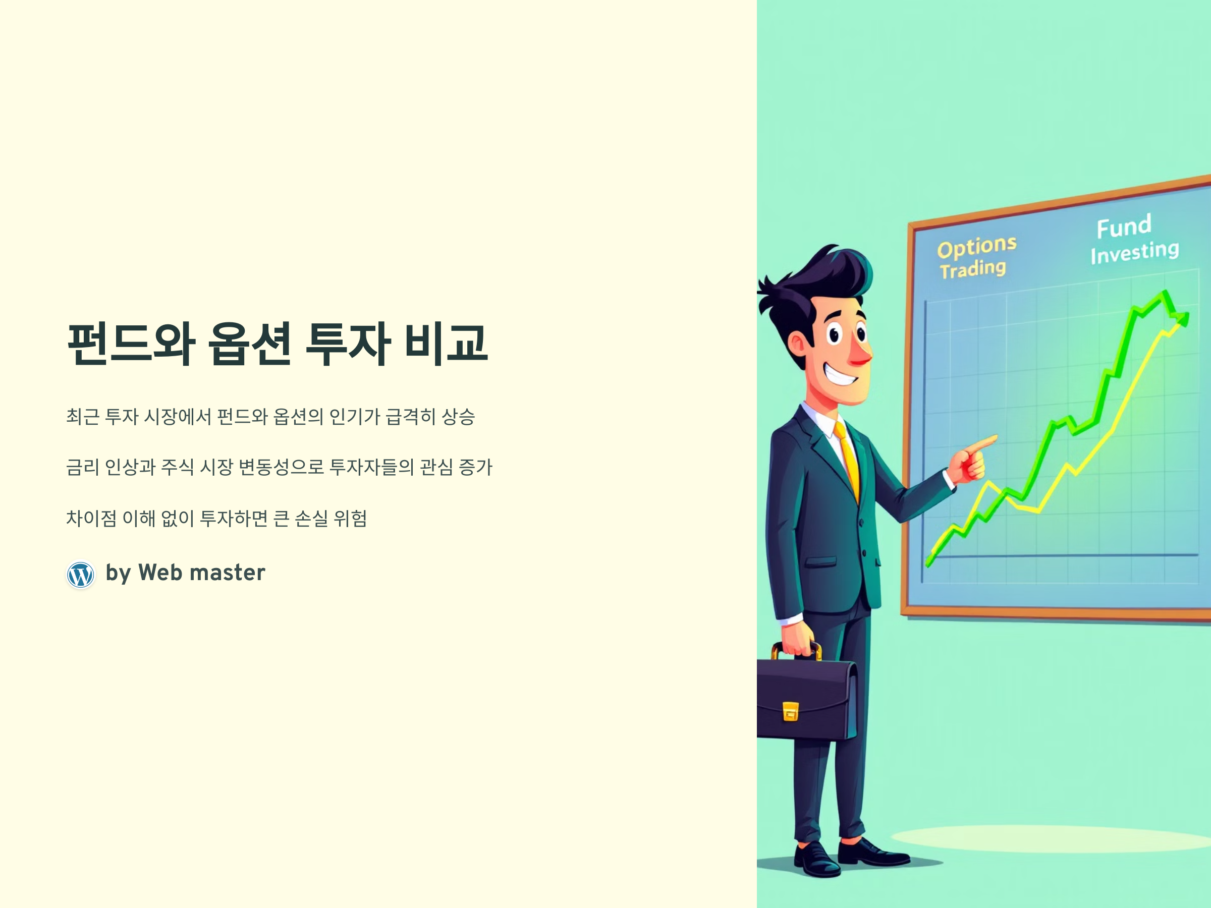 최근 투자 시장에서 펀드와 옵션의 인기가 급격히 상승하고 있습니다. 특히 금리 인상과 주식 시장 변동성이 커지면서 안정적인 수익을 노리는 투자자들은 펀드를, 고수익을 노리는 투자자들은 옵션에 주목하고 있습니다. 하지만 이 둘의 차이를 명확히 이해하지 못하고 투자에 나섰다간 큰 손실을 볼 수 있습니다. 최근 금융당국도 파생상품인 옵션 거래의 위험성을 경고하고 있으며, 각 상품의 구조와 특성을 정확하게 파악해야 합니다. 앞으로의 시장에서는 복합적인 투자 전략이 더욱 중요해질 것으로 보이며, 펀드와 옵션의 차이를 확실히 구분하고 투자에 활용하는 것이 성공적인 포트폴리오를 구축하는 핵심이 될 것입니다. 본 글에서는 최신 금융 트렌드와 함께 펀드와 옵션 투자 차이, 장단점, 리스크 관리법까지 총정리하여 알려드리겠습니다. 펀드와 옵션 투자의 모든 것을 알고 싶다면 끝까지 읽어보세요!